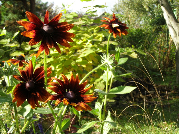 Jesień potrafi zachwycać.Ogród przybiera wówczas piękne ciepłe barwy.Każdy dzień przynosi zmiany i zaskakuje.Uwielbiam obserwować w tym czasie przyrodę.Kocham szum traw na wietrze i eksplozję barw.Klimat panujący w ogrodzie nastraja do przemyśleń i jest dla mnie niezwykle relaksujący.Szkoda tylko,że po jesieni przychodzi długa zima.