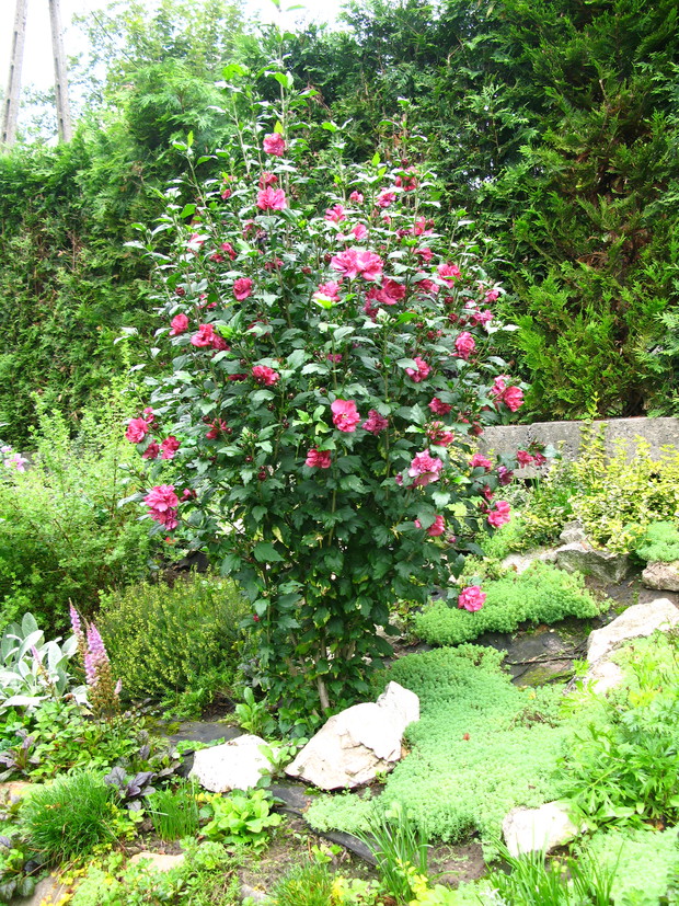 Ketmia syryjska to idealny krzew zarówno do małych ogrodów i pojedynczych nasadzeń (świetnie prezentuje się jako soliter na zadbanym trawniku) jak i tych dużych ogrodów czy do tworzenia żywopłotów. Krzew ten zaczyna bardzo późno wegetację, liście wypuszcza dopiero późną wiosną, a jego kwitnienie przypada na okres połowy lipca aż do jesieni, czyli praktycznie wtedy, kiedy większość roślin zdążyła wytworzyć już owoce i nasiona. Na rynku obecnie jest bardzo dużo odmian ketmii syryjskiej od tych o kwiatach pojedynczych: Red Heart, Russian Violet, Blue Bird do tych o kwiatach pełnych: Lucy, Boule de Feu lub też o ciekawych nakrapianych liściach Purpueus Variegata.
