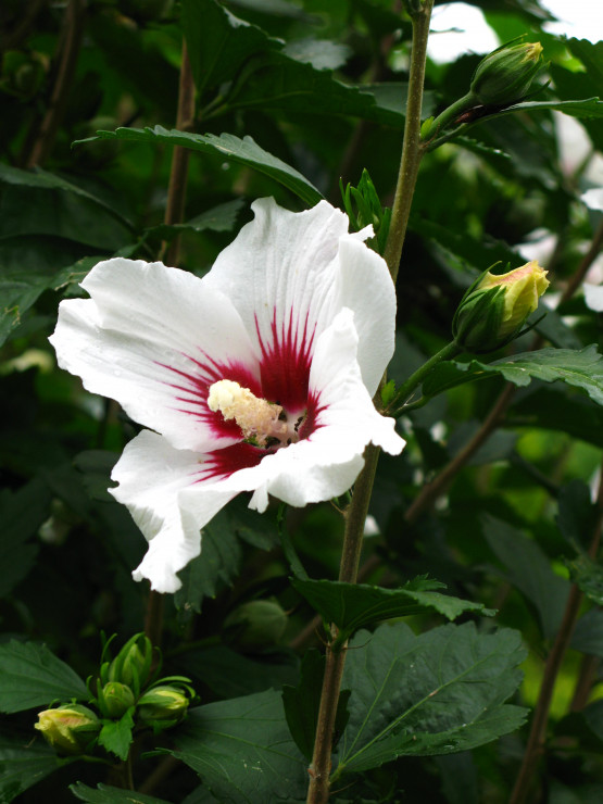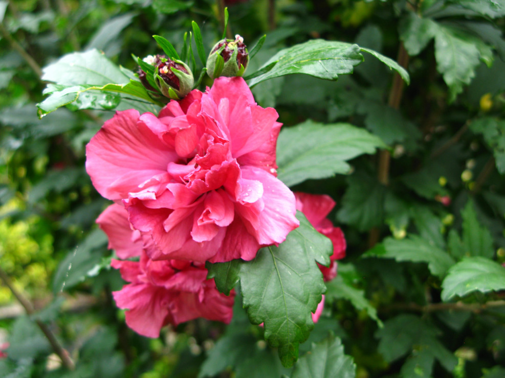Taki zabieg wpłynie korzystnie również na kwitnienie (bardziej obficie będą zawiązywały się pąki kwiatowe). Trochę inaczej należy potraktować te krzewy jeżeli mamy z nich zrobiony żywopłot, bowiem ketmia syryjska nie należy do roślin o bardzo bujnym wzroście. Aby nasz żywopłot miał ładny pokrój przycinajmy krzewy o kilkanaście centymetrów by mogły swobodnie się rozwijać. Chcąc rozmnożyć ketmię syryjska możemy zrobić to na dwa sposoby. Pierwszy z nich to wysiew dojrzałych nasion, które tworzą się w miejscach przekwitłych kwiatów i zazwyczaj krzew wydaje ich bardzo dużo. Nasiona wysiewamy w lutym lub marcu, a kiedy młode siewki podrosną należy wypikować je do osobnych doniczek, a potem do ogrodu. Rozmnażając w ten sposób ketmię syryjską należy pamiętać, że rośliny które urosną, mogą się różni od siebie siłą wzrostu a nawet barwą kwiatów. Dlatego jeżeli mamy odmianę na której szczególnie nam zależy, rozmnóżmy ją z pędów, które najlepiej jest pobrać w połowie czerwca i w lipcu. Odcinamy pęd jednoroczny z 2-3 oczkami, zanurzamy go w ukorzeniaczu i sadzimy w mieszance torfu i piasku. Posadzone rośliny zraszamy i dbamy o to by miały stałą wilgotność, wówczas już po miesiącu powinniśmy mieć ukorzenione sadzonki. W swoim ogrodzie posiadam 4 odmiany ketmii syryjskiej Read Heart, Russian Violet, Boule de Feu i Purpueus Variegata. Najbardziej ciekawa wydaje mi się odmiana Ketmia syryjska - Boule de Feu o pełnych kwiatach.