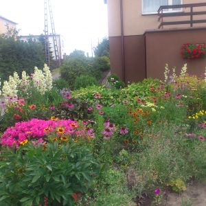 Hosty to jedne z moich ulubionych kwiatów, cały rok mają ozdobne liście, a do tego kwitną. Co roku staram się poszerzać moją kolekcję przynajmniej o kilka ponieważ marzy mi się, by zdobiły moją rabatę, której cień nada rząd tuji szmaragdów posadzonych przy jednej stronie ogrodzenia. Tuje już rosną na swoim miejscu, lecz są teraz wielkości równej co niektórym hostom ;) Tę rabatę dokładnie sobie wyobrażam, bo tuje będą stanowiły trzeci plan rabaty, a hosty będą na pierwszym planie. Pomiędzy tujami, a hostami chciałabym posadzić jeszcze różaneczniki, róże i hortensje, a całą rabatę wyłożyć korą, ponieważ wszystkie te rośliny ją lubią.