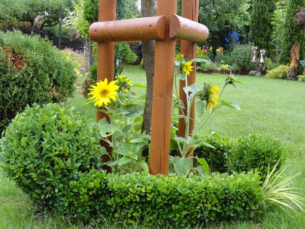 Kocham lato w ogrodzie... Codziennie wyczekuję chwili, kiedy mogę wyjść z domu i spędzić dzień w ogrodzie... Tam odpoczywam, relaksuję się i nabieram sił... Lubię mój ogród i zakątki ozdobione różnymi przedmiotami... Wszystkie ozdoby przypominają mi jakieś miejsca, bliższych lub dalszych znajomych... Lubię poleżeć na leżaku i powspominać tak sobie w ciszy... jednocześnie planując - co zrobić dalej... Ogrodowy Anioł Stróż czuwa nad wszystkim...
