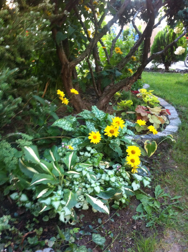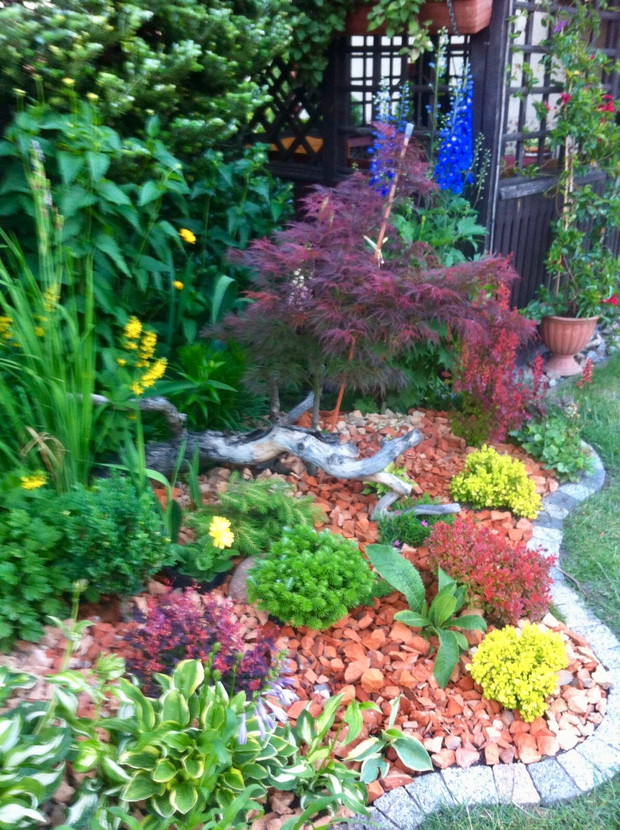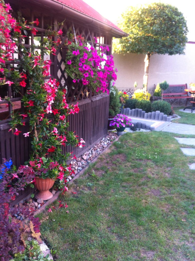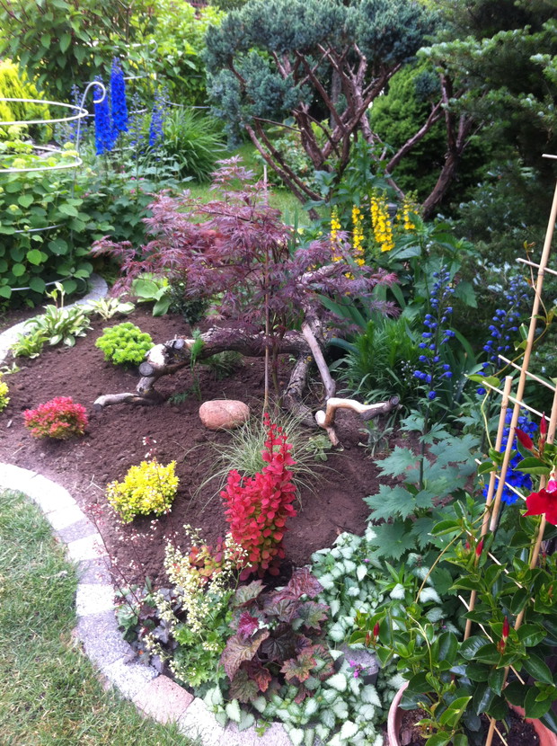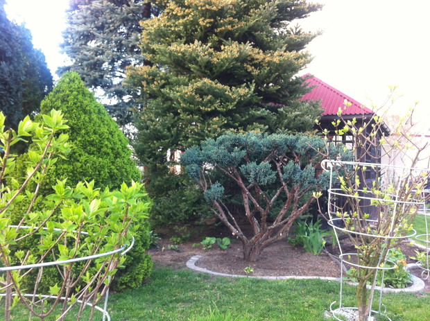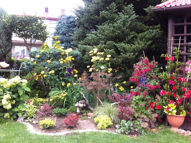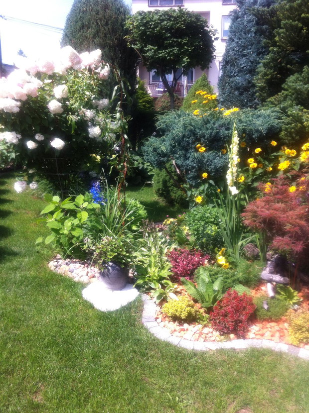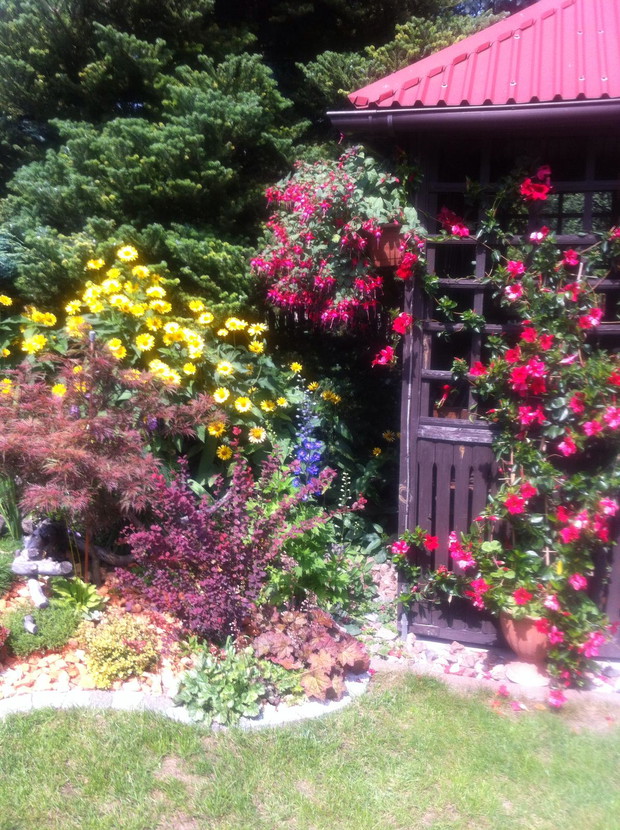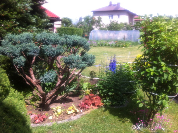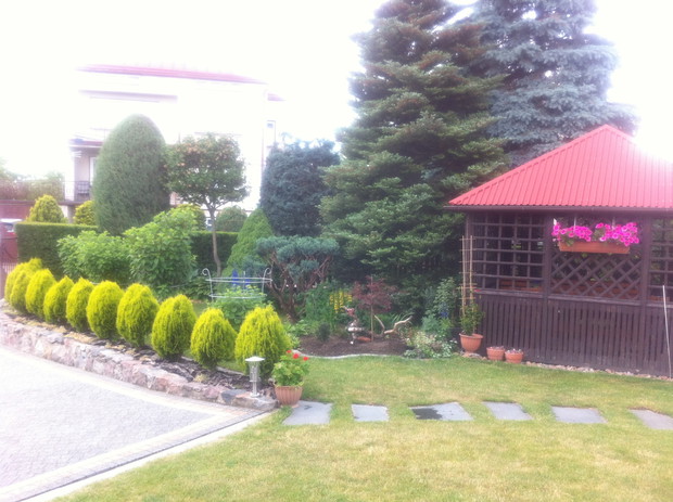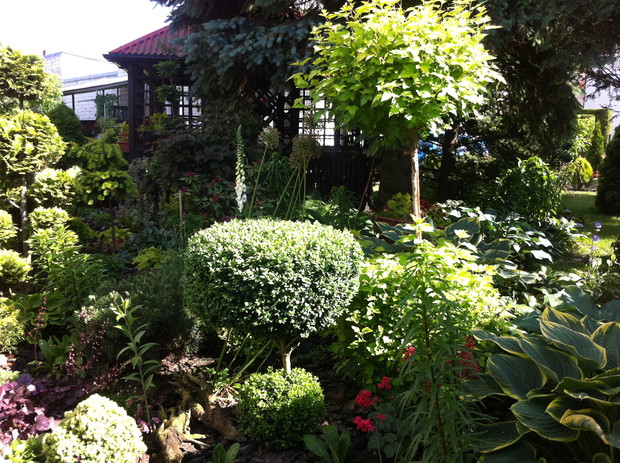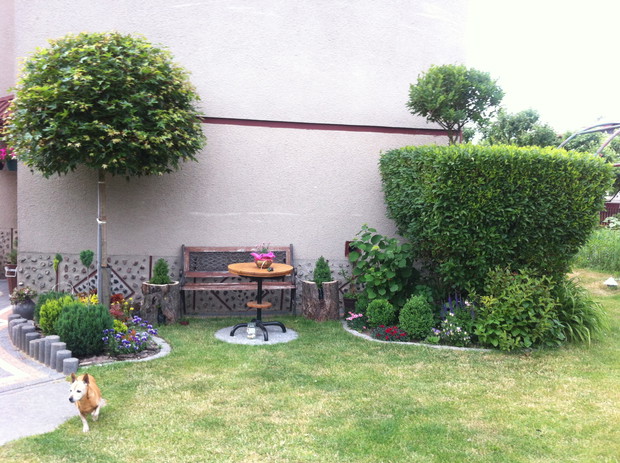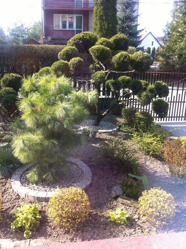 Witam wszystkich pasjonatów ogrodów z tej strony Justyna raczkująca w tym temacie, jednakże nie będę skromna co roku lepiej mi wychodzi podcinanie drzewek, wiadomo jak z pasją ,sekator sam w dłoni chodzi. Piękno natury , pod okiem pasjonatów można tak to ująć ... niewielki ogród a jakże kolorowy mieszczący się w małej miejscowości niedaleko Łap. Ogród jest naszą rodzinną pasją, codzienne dbanie to pracowite zajęcie, ale jakże przyjemne. Od kilku lat ogród zmienia się wizualnie zależnie od pory roku, jak i naszej wizji ,coś nowego dochodzi drzewko ozdobne , czy kwiatek , to trzeba usunąć z wielkim żalem wiadome skutki zimowej aury. Kwiatami zajmuje się głównie mama podlewa je przesadza , rosadza, usuwa przekwitnięte kwiatki , listki... Drzewa i krzewy ozdobne to zajęcie głównie moje i taty sekator w dłoń i godziny spędzone na wycinaniu, formułowaniu itd można oderwać się zapomnieć o trudach dnia codziennnego tylko drzewko i ja, ale zrozumie to tylko osoba która to lubi i tak jak ja odpoczywa przy tym ... moim ulubieńcem jest bukszpan nie jest marudny łatwo z niego formułować różne kształty co jest urocze w nim zimą jest zielony przykryty białą pierzynką śniegu a i tak oko cieszy i niesie wspomnienie lata ... powoli zaczynam przekonywać się do innych drzew ... gościnnie na nasze podwórko zagląda wiewiórka.... ptaki robią sobie gniazda na drzewach po czym małe donośnie śpiewają podczas porannej kawy.., serdecznie pozdrawiam wszystkich pasjonatów przyrody