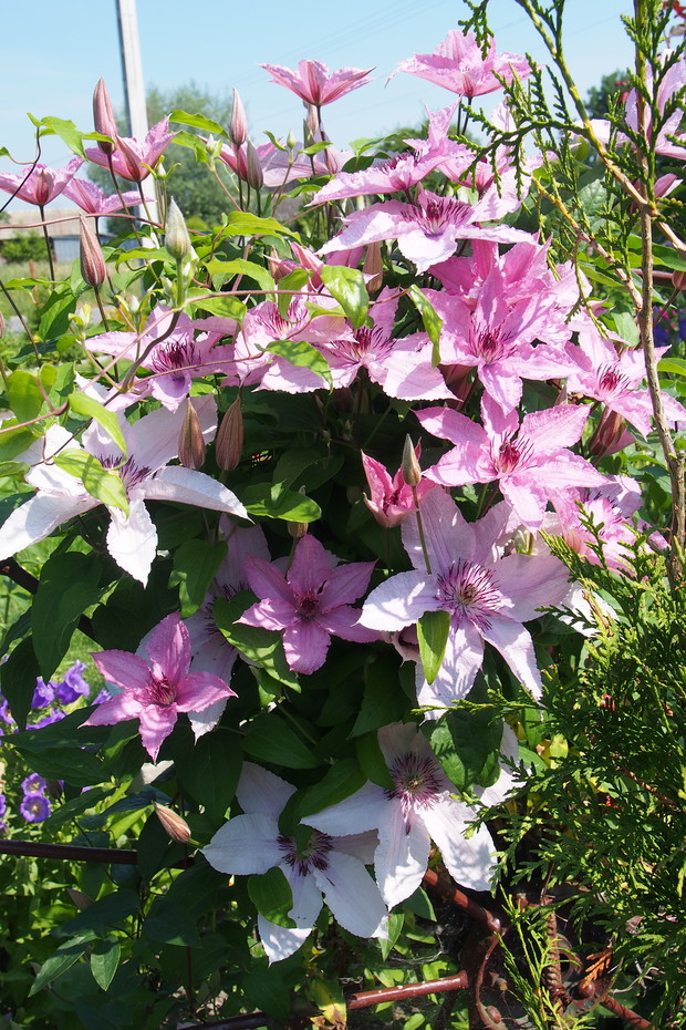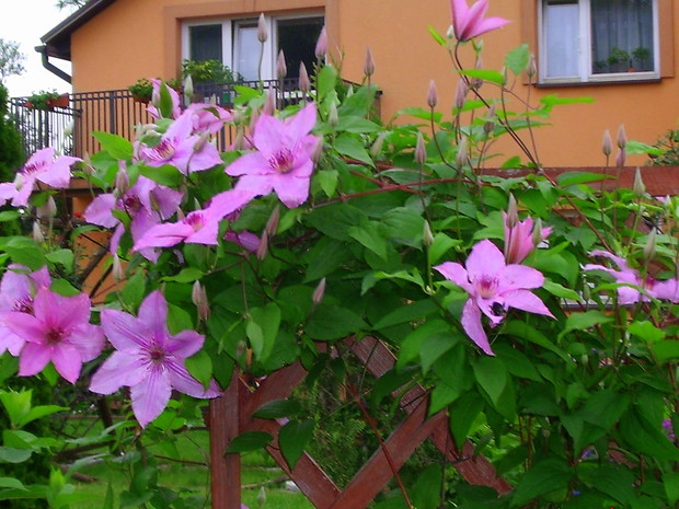 ..........Powojniki są bardzo ozdobnymi pnączami dorastający do 2-8 m (w naszym klimacie, w zależności od gatunku i odmiany). Przyrosty roczne pędów wynoszą od 1 do 3 m. Obficie i długo kwitną. Mają kwiaty okrągłe, duże o średnicy od 5 cm w górę, różnych barwach od białej przez różową, czerwoną do ciemnofioletowej i niebieskiej. Kwitną długo od maja do października. U niektórych gatunków ozdobę stanowią także kuliste owocostany. Pędy powojników są cienkie, długie i delikatne. Przyczepiają się one do podpór za pomocą ogonków liściowych i szypułek kwiatowych. Powojniki w zależności od odmiany osiągają wysokości 1,5 - 3,5 m. Znanych jest około 230 gatunków i ich liczne odmiany. ............................................................................................................................................................................................................................................................................................................................................................................................................................................................................................................................................................................................................................................................................................................................................................................................................................