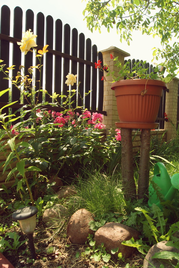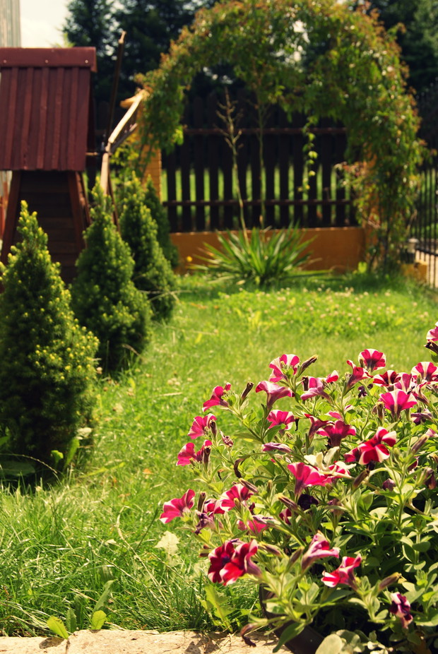 Kiedy myślę, że już nic nie jest w stanie mnie zaskoczyć, udaję się do ogrodu i za każdym razem odkrywam magię tego miejsca. Nie preferuję ogrodów skrupulatnie urządzanych, podsypywanych kamyczkami to tu, to tam. Dla mnie magią są miejsca pełne naturalności - dobrze kierowanej przez człowieka. Ogród wiejski, rustykalny, gdzie ma się wrażenie, że wszystko jest przypadkowo, a jednak celowo. Mój ogród? Odbiega od tej wymarzonej wizji. Co jednak jest wspólne - to nieprzemijająca mgiełka radości, niepowtarzalności i schronienia, którą zyskuję każdego dnia otaczając się tą sielskością. Od tego roku stawiam w ogrodzie na wszystko, co daje "plony". Czekam na plagę późnej odmiany maliny, na zarumienienie śliwek, które tego roku pierwszy raz owocowały, a w planach są krzewy porzeczek czerwonych i nutka czegoś niespotykanego, rzadkiego. Tego roku atak ślimaków na moje hodowle kwiatów opanował wszystko - łącznie z ogródkiem warzywnym. Zachowały się pojedyncze okazy, które rozświetlają "puszczę" drzew i krzewów. I to mnie cieszy.