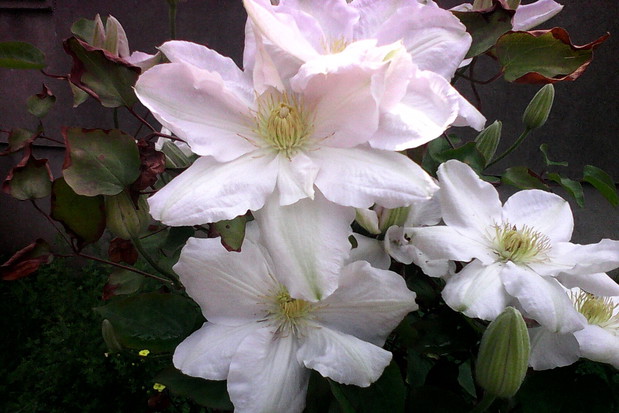 Sa to kwiaty klematisu,kwitnie nam co roku,ale w tym jest wyjatkowo bujny i ma wiele kwiatow bialych............................................................................................................................................................................................................