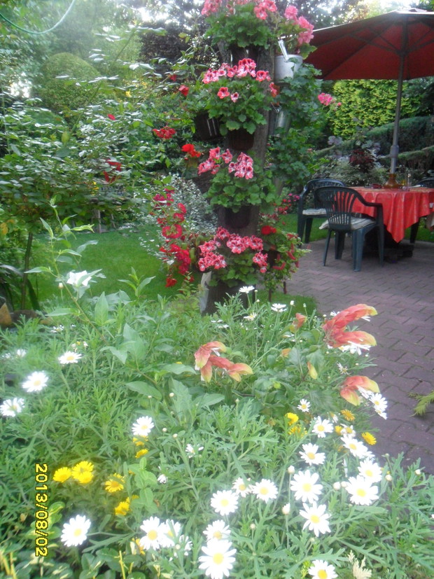 Moje kwiatki posadzone w doniczkach sa co roku do poznej jesieni i sa przenoszone w zaleznosci od konieczności w miejsca gdzie trzeba wyciac przekwitłe byliny np.liliowce - godnie je zastepuja a tym samym miejsca te nie szpeca ogrodu - a jeszcze zmienia się jego aranzacja - polecam - warto - pozdrawiam.