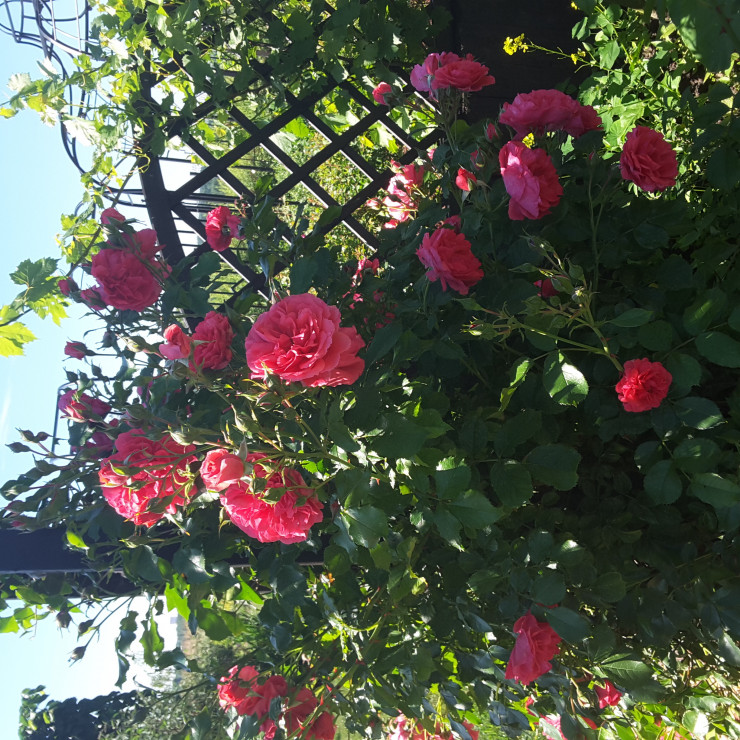 To tylko niektóre kwiaty z mojego ogrodu. Biel, róż,fiolet i błękit, to kolory przeważające w aleji bylinowej oraz wokół domu, podkreślone dekoracjami: kule, ławki, donice, obeliski w kolorach czarnym, białym, niebieskim, zależnie od zaaranżowanego kącika w ogrodzie. W warzywniku dominuje kolorystyka w odcieniach czerwieni, pomarańczu i żółci, która wśród warzyw jest wyjątkowo energetyczna, a wszystko podkreśla ławka, fotele wiklinowe oraz obeliski w kolorze czerwonym. W ogrodzie mam kilka miejsc, w których można odpocząć i zobaczyć rośliny z innej perspektywy.