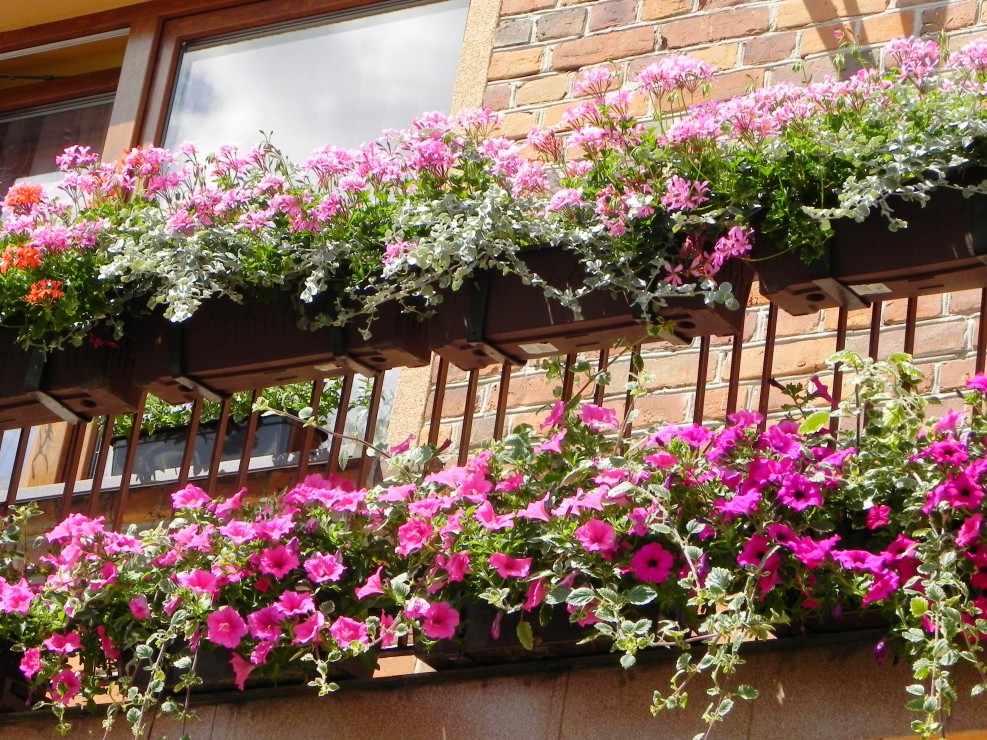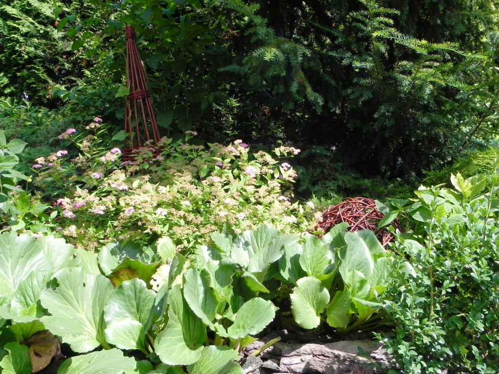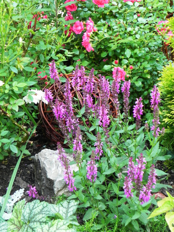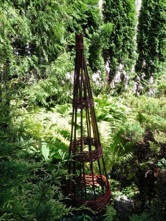 Około siedem lat temu nasz ogród ozdobny zaczął wypierać trawnik. Wszystko zaczęło się od zakupu kilku krzewów i kolorowych zrębków. Mimo niewielkiej powierzchni cały czas powiększamy kolekcję bylin i krzewów. Dodatkowe puste miejsca wypełniamy kwiatami jednorocznymi i cebulowymi. W ostatnich latach szczególnym upodobaniem darzymy hosty, żurawki i fuksje, których kolekcję z roku na rok powiększamy. Odkrywanie nowych gatunków bylin dostarcza nam wiele radości. Zależy nam by w ogrodzie rosły rośliny miododajne, z tego powodu chętnie sadzimy miodunki i macierzankę. Na wiosnę nie może zabraknąć roślin cebulowych: tulipanów, narcyzów i krokusów. Przepięknie prezentują się też czosnki ozdobne. Wczesną wiosną zaczynamy planować nasadzenia kwiatów balkonowych a także roślin, które będą rosły w donicach przed domem. Zazwyczaj są to pelargonie, surfinie, werbeny, bratki a także rośliny o kontrastujących liściach takie jak kocanka i komarzyca. W tym roku w naszych donicach zadebiutowała datura. Ogród chętnie urozmaicamy wyrobami z wikliny, do których mamy szczególna słabość. Rośliny wodne, które jesienią zamieszkają w oczku wodnym chętnie rosną w plastikowych baliach wykorzystywanych do prac budowlanych.Sadzonki żeniszka, aksamitki i niektórych surfinii wczesna wiosną otrzymujemy z własnej produkcji. Kolejne gatunki i odmiany roślin wyszukujemy zarówno u miejscowych sprzedawców jak też w sklepach internetowych.