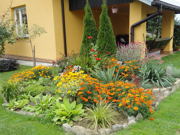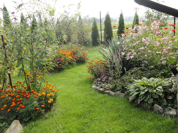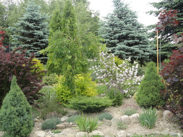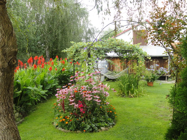 Kilka lat temu zaczęłam moją wielką przygodę z ogrodnictwem. Tworzenie ogrodu to dla mnie wielka pasja. Sadzenie, przesadzanie i pielęgnacja roślin sprawia mi dużo radości i satysfakcji. Metodą prób i błędów tworzyłam pierwsze wielogatunkowe, mieszane rabaty z iglaków, krzewów kwitnących, bylin, roślin cebulowych i jednorocznych. Powstał także mały warzywnik i jagodnik, aby można było coś skubnąć z krzaczka. Zróżnicowana roślinność, kolorowe, kwitnące i miododajne kwiaty a także różne zakamarki z kamieni i starych gałęzi zwabiły do ogrodu dużo owadów, ptaków, motyli i płazów. Ogród tętni życiem a kolor nie znika z niego aż do zimy. Cierpliwość i ciężka praca się opłaciły bo teraz jest co podziwiać i gdzie odpoczywać.