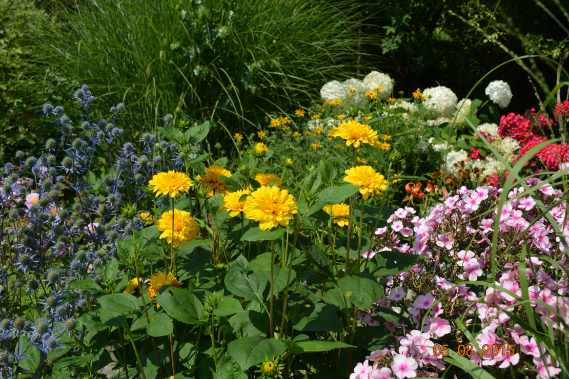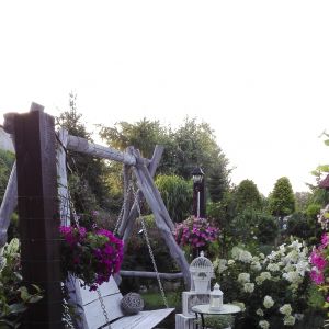Mój ojciec założył ten ogród dawno , prawie 30 lat temu. Kiedyś były tu głównie warzywa i owoce. Wyparły je z czasem trawniki i kwiaty. Zajęłam się ogrodem ,kiedy ojcu ze względu na podeszły wiek brakowało już sił Teraz najwięcej tu kwiatów. Byliny, trawy, krzewy róż tworzą imponujące rabaty.Inspiracją dla mnie były ogrody naturalistyczne podziwiane w Anglii, wiejskie ogrody podziwiane w Polsce.Chciałam aby była to oaza spokoju , otoczyłam więc ogród żywopłotem formowanym i nieformowanym z krzewów głównie liściastych. Co lubię najbardziej...kwiaty wczesnego lata , leniwe popołudnia w cieniu drzew, ciszę , owady , ptaki, zaskrońce , które"zalęgły" się w moim kompostowniku. Nie lubię betonu na ścieżkach , które były standardem w latach 80tych. Sporo czasu spędzam tutaj z mężem i synem, panowie często angażują się do różnych prac. Każdego roku coś dosadzam , przesadzam, coś zostaje wycięte,coś przywiezione z podróży..więc ogród nieustannie się zmienia...
