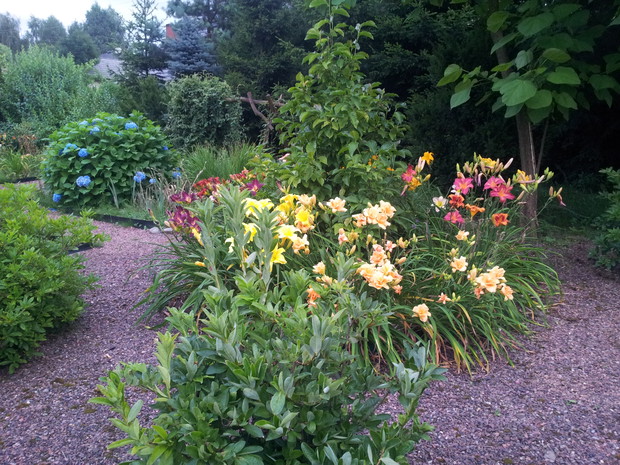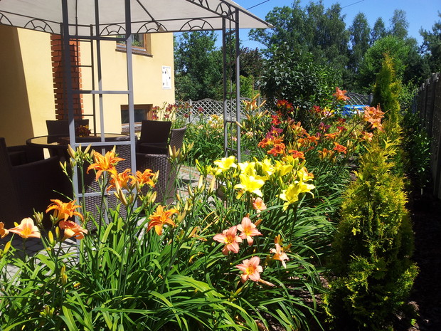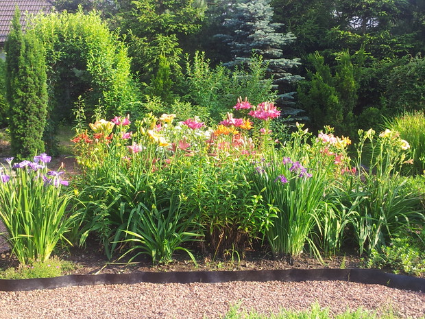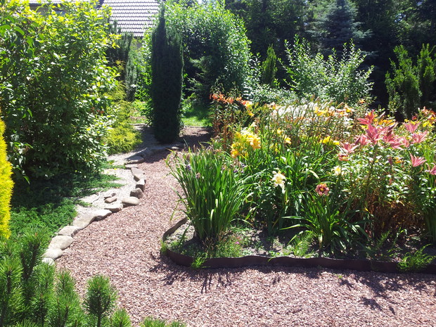 Mój ogród to wiodący ścieżkami do różnych zakątków wypełnionych iglakami , krzewami i rozmajtymi kwiatami kwitnącymi zależności od odmiany przez cały rok. Chodź trzeba dużo czasu poświecić na pielęgnacje ogrodu, to warto bo spacerując wśród kwiatów można podziwiać ich piękno. Kilka lat temu zauroczyły mnie Lilowce i jak widać na zdjęciach znajdują się w każdym zakątku ogrodu. W mojej kolekcji mam ich bardzo dużo, ale i tak dokupuje nowe odmiany. Każdego roku dosadzam coś nowego do ogrodu aby go bardziej udoskonalić.