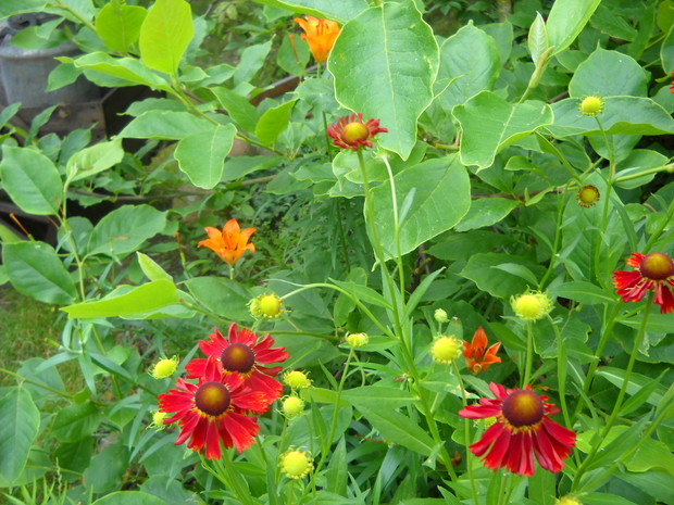Od początku lipca jest barwnie i kolorowo w każdym zakątku ogrodu.Rabaty zdobią słoneczniki miniaturowe które uwielbiam są wyraziste.Ostróżka przykuwa wzrokiem.Lawenda wydaje zapach,rośnie u mnie w pojemnikach w altance ze względu na to że zwabia do siebie barwne motyle a także nie mam tyle komarów które są sporym utrapieniem.