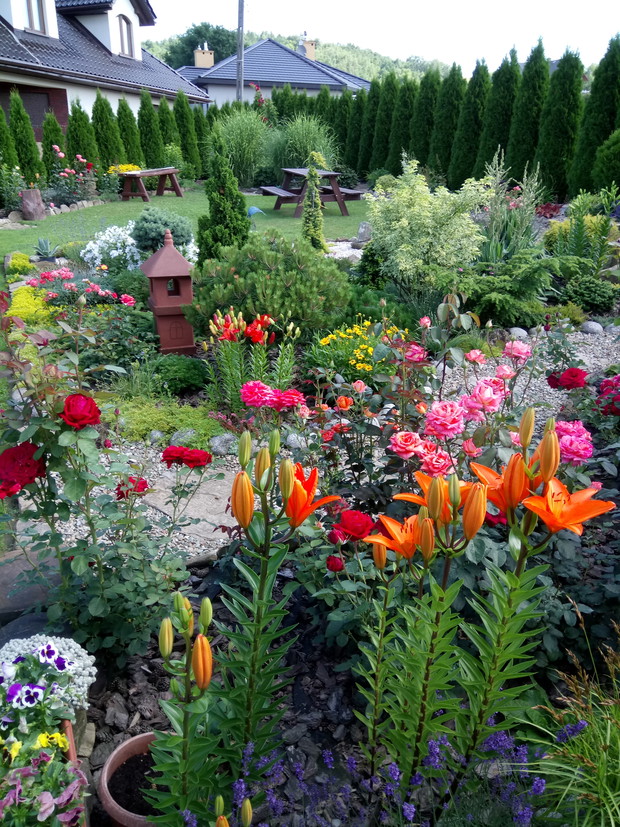 Lubię jak w ogrodzie jest kolorowo,dlatego tak bardzo kocham kiaty za ich niepowtarzalne barwy które nadają mojemu ogrodowi magiczny nastrój.Ogród sprawia że gdy do niego wchodzę czuję się jak w innym świecie ,wszystko co złe znika ,zapominam o wszystkich sprawach i delektuje sie jego pięknem.Praca w nim to przyjemność dla ciala i duszy.