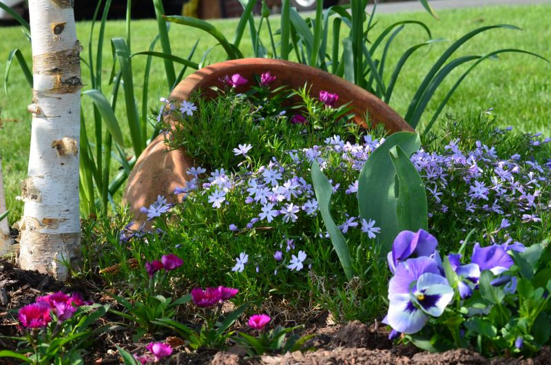 Kwiaty w donicach posadzone miejsce bratków zajęły pelargonie a bratki no cóż musiały przenieś się pod brzozę ale z tego co widzę i tu prezentują się pięknie. Dostały porządnej ziemi i mają rosnąć. Na rabatach wsadziłam róże które będą rosły w pełnym słońcu i mam nadzieję że się tutaj będą dobrze czuły gdyż rośliny które rosły do tej pory niestety nie wytrzymały tak nasłonecznionego stanowiska. Między róże rudbekie i lawendy posadziłam zioła melisę miętę i teraz będę patrzeć jak to się będzie miało jedno przy drugim. Zawsze można przesadzić :) No kiedy prace ogródkowe mam za sobą mogę usiąść z lekturą Mojego Pięknego Ogrodu i po rozkoszować się widokiem własnoręcznie wykonanego zdjęcia moich dekoracji tarasowych z ubiegłego roku które znalazło się w majowym wydaniu magazynu. Dziękuję
