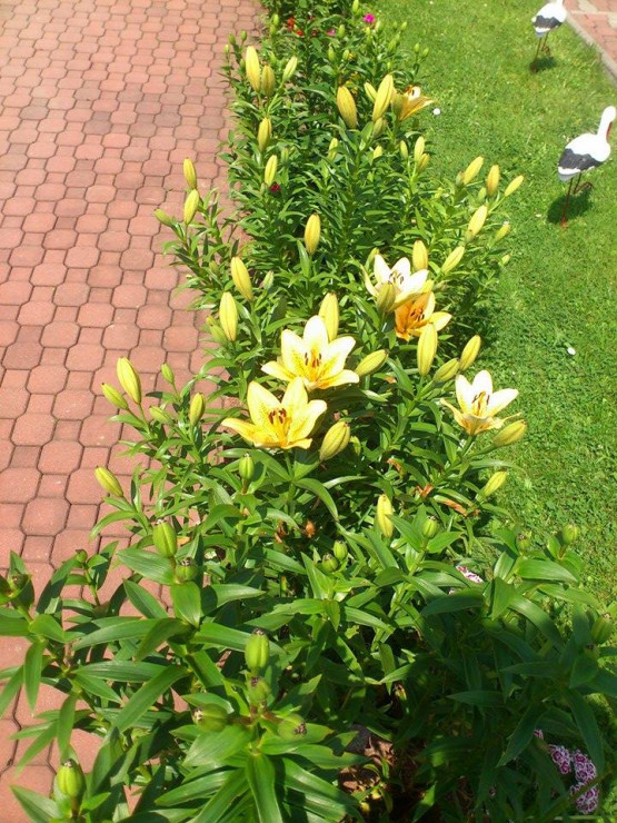 moj ogrod przydomowy jest maly ale bardzo sie z niego ciesze .Kazda wolna chwile poswiecam moim kwiatom i krzewom. znajduje sie w nim roze krzewuszki azalie,i wiele innych .Ale ze wzgledu na to iz jest maly to wiekszosc kwiatow na wiosne sadze ze swoich sadzonek w donicach ,Przedewszystkim surfinie i pelargonie wiszace i stojace .Bardzo duza wage przywiazuje aby ja jak i moi znajomi cieszyc oko przez caly rok stosuje sprawdzone odzywki do kwiatow aby obficie kwitly i nie chorowaly.Przy wjezdzie jest alejka lilii ktore zaczynaja dopiero kwitnac ale w kazdej donicy sa inne kolory i coniektore pachna cudownie ,jestem dumna ze swojego malutkiego azylu spokoju.Jest w nim wiele kwiatow roznego koloru dlatego jest barwny i kolorowy Pomimo wielu prac jakie sa w ogrodzie czuje sie ta radosc z posiadania