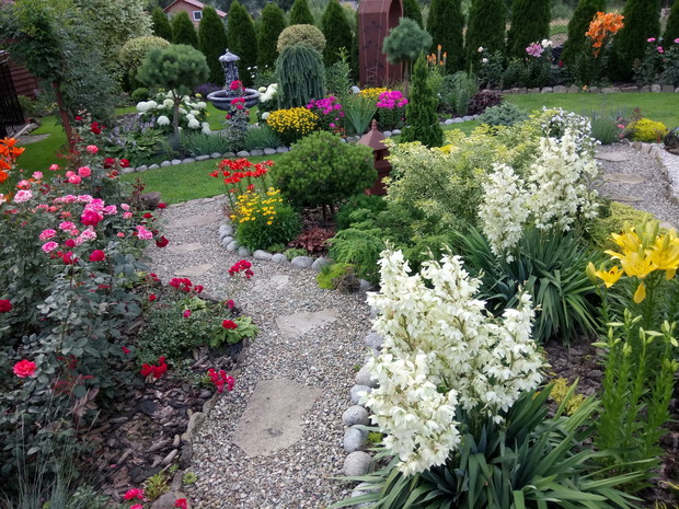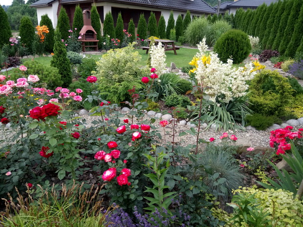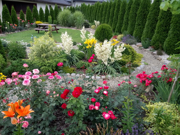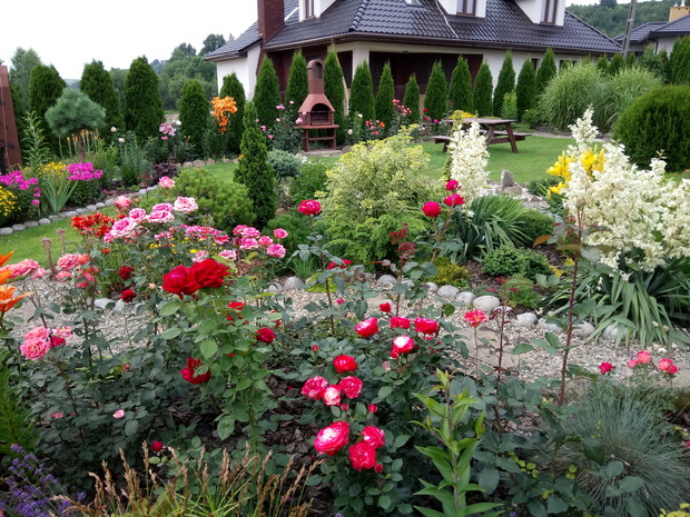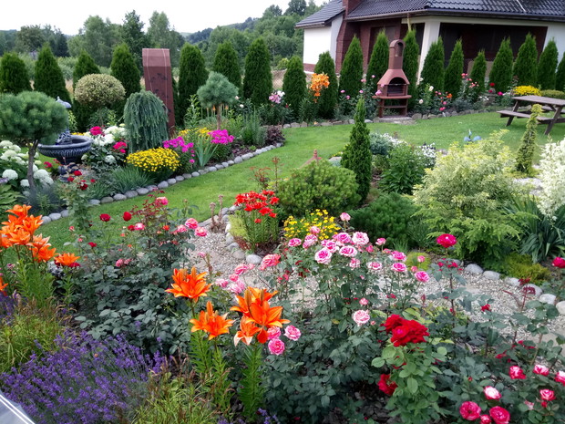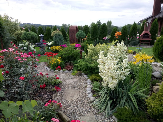 Moja przygoda z ogrodem zaczęła się tak naprawdę z narodzinami najpiękniejszego kwiatu w moim ogrodzie czyli narodzinami mojego syna.Kocham kwiaty,dlatego nie wyobrazam sobie ogrodu bez nich,ich zapachu i owadów które przylatuja do nich.Lubię spędzać czas w ogrodzie na pracy jak i odpoczynku,tworzyć nowe rabaty ,nadawać roślinom nowe kształty .Kwiaty nadają magii mojemu ogrodowi i towarzysza mi już od wczesnej wiosny kiedy to kwitną tulipany,irysy ,pierwiosnki,sasanki ,floksy szydlaste i inne wiosenne kwiaty.Latem zachwycają nas swoimi barwami róże(które powtarzają kwitnienie i kwitną do samej jesieni) ,lilie ,juki ogrodowe ,rudbekie,chortensje .Do ogrodu przyciaga mnie zapach a nie moze wypuścić magiczna silła kolorów.Na takie widoki czekam z utęsknieniem przez całą zimę kiedy to wymyślam plan na nowy sezon i tak co roku powstaje coś nowego.Chcę wprowadzic do mojego ogrodu nowe gatunki kwitów ,zakochałam się w ostróżkach i jeżówkach i myślę ze one zawitają do mojego ogrodu w następnym sezonie.