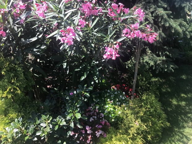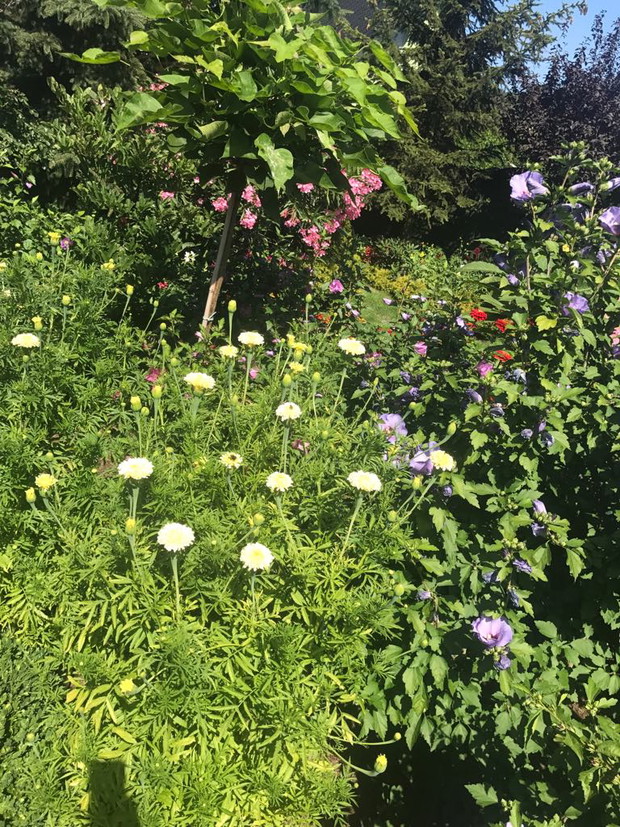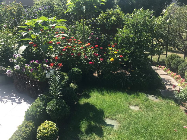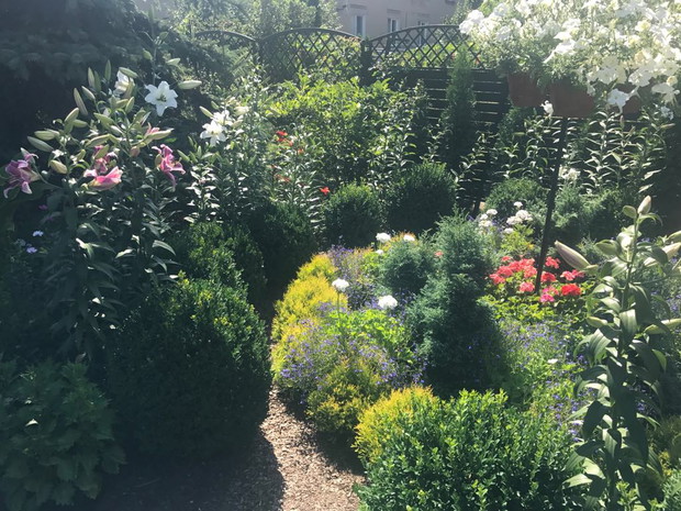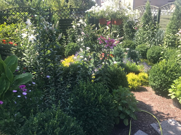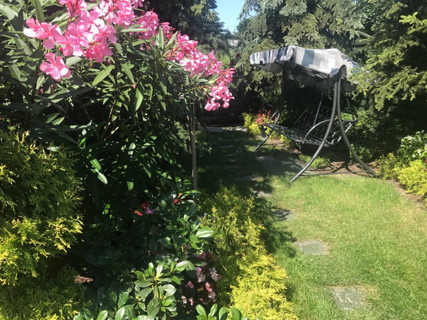 Mój przydomowy ogród to mój mały raj na ziemi. Kwiaty i prace ogrodnicze od kiedy pamiętam były moją wielką pasją. W swoim ogrodzie czuję się najlepiej. Tutaj odpoczywam i ładuje baterie. W uprawę ogrodu wkładam całe swoje serce. Na zdjęciach możecie Państwo zobaczyć różnego rodzaju kwiatym.in oleandry, lilie drzewiaste, begonie stale kwitnące, hibiskusy, dalie, gazanie, lewkonie, cynie, pelargonie, surfinie, hortensje, petunie, malwy, lobelie, stokrotki afrykańskie, kalie i inne... Na wiosnę w ogrodzie rosną również hiacynty, tulipany różnokolorowe, narcyzy, piwonie, i róże. Trzon ogrodu stanowią bukszpany, tuje i dwudziesto pięcio letnie świerki. Na tyłach ogrodu rośnie i pięknie owocuje borówka amerykańska. Około 80 % roślin w moim ogrodzie to rosliny rozmnażane przeze mnie poprzez wysiew nasion i szczepienie sadzonek. Pelargonie, surfinie , gazanie, lobelie, petunie, stokrotka afrykanska zostaly wyhodowane z ziarenek na domowych parapetach ( posiadam dokumentacje zdjeciowa ;) )