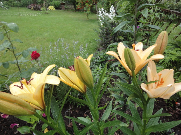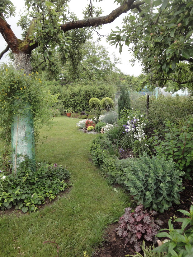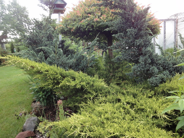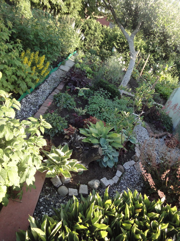 Mój mały zakątek tworzę od 5 lat,największy nacisk kładę na rabaty kwiatowe tematyczne np.liliowe .różane ,hortensjowe,są też mieszane,staram się żeby moje kwiatki miały dobry pokarm i nie zabrakło im wody,przeszkadzające chwasty wyrywam na bieżąco,praca na działce sprawia mi przyjemność przez cały rok, najbardziej jednak lubię okres letni,począwszy od wiosny jestem codziennie na działeczce ,dzień bez ogrodu to dla mnie dzień stracony,pielęgnuję swoje piękności a potem podziwiam,moich kwiatów nie ścinam do wazonu ,bo mi po prostu szkoda,wolę żeby zdobiły mi ogród,ścinam je dopiero jak przekwitną.Na działce mam też warzywka i owoce Sałatę ,rzodkiewkę zajadamy już w kwietniu a to dzięki namiotowi z folii,potem w nim rosną pomiodory i ogórki .Z owoców najwcześniej dojrzewa jagoda kamczacka ,troszkę kwaśna ale pełna witamin,truskawki,poziomki,porzeczki ,agrest,jabłuszka ,gruszki ,śliwki,borówki te wszystkie owoce zapewniają mi i mojej rodzinie witaminki przez cały rok