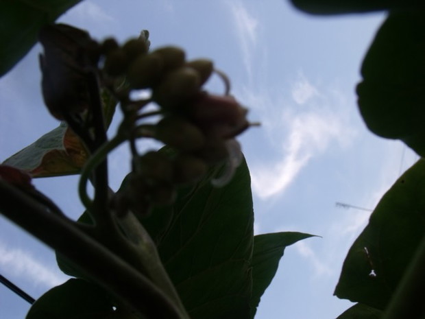 Sadzonki 3 sztuki tej rośliny wyrosły mi w podarowanym doniczkowym kwiatku .W drugim roku wzrostu wysadziłam do gruntu urosły do imponujących rozmiarów bo liście miały 31-32 cm. szerokości a długie na 38 -39 cm. pomimo wszystko bałam się że roślina ta nie przezimuje mi w gruncie .I tak to roślina powróciła do mieszkania a że nie mieściła się pod sufitem ,została nieco skrócona .Teraz zdobi balkon na dodatek zakwitła kierując się opisami roślin egzotycznych podejrzewam że to może być drzewo pomidorowe.