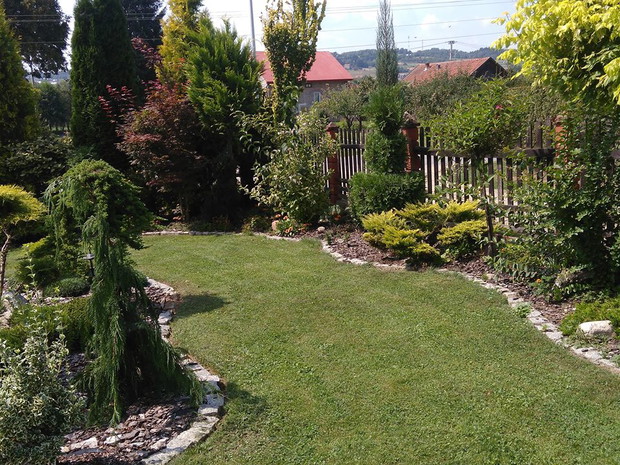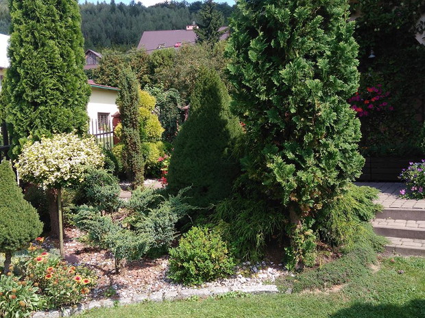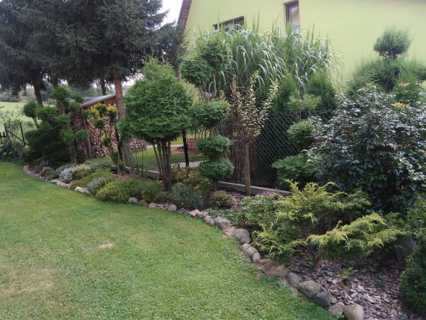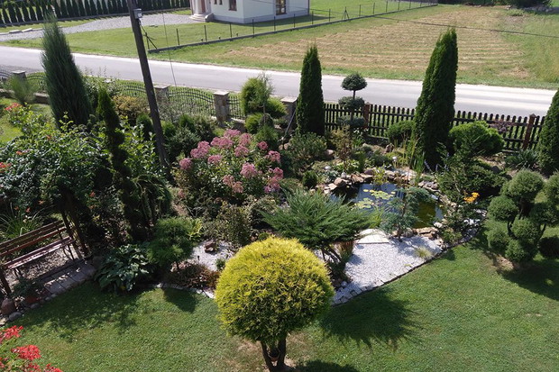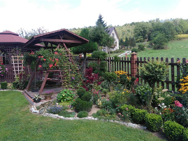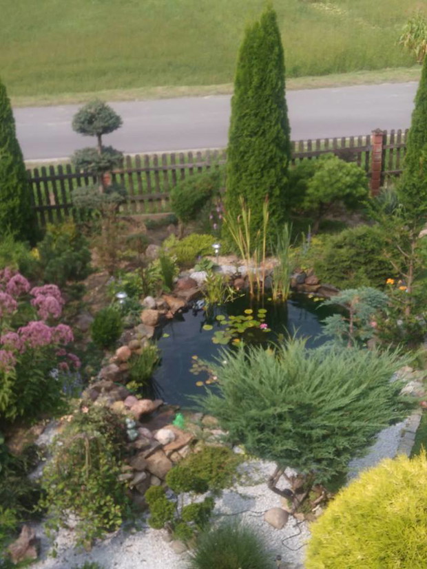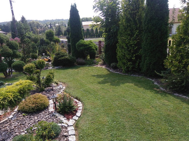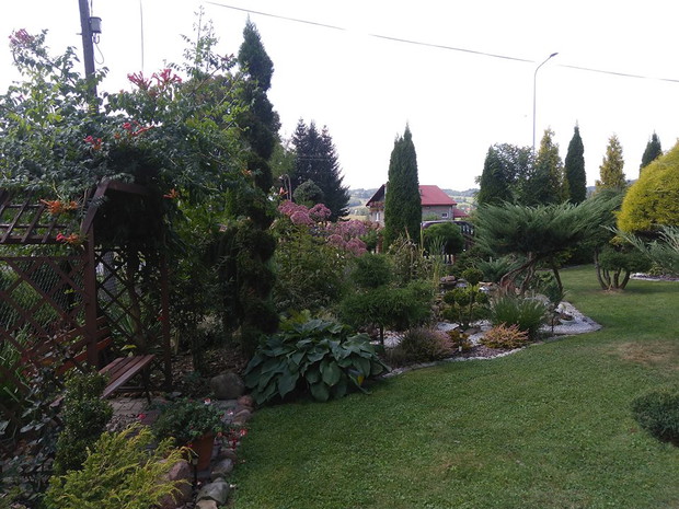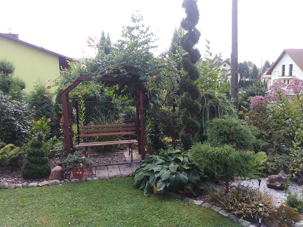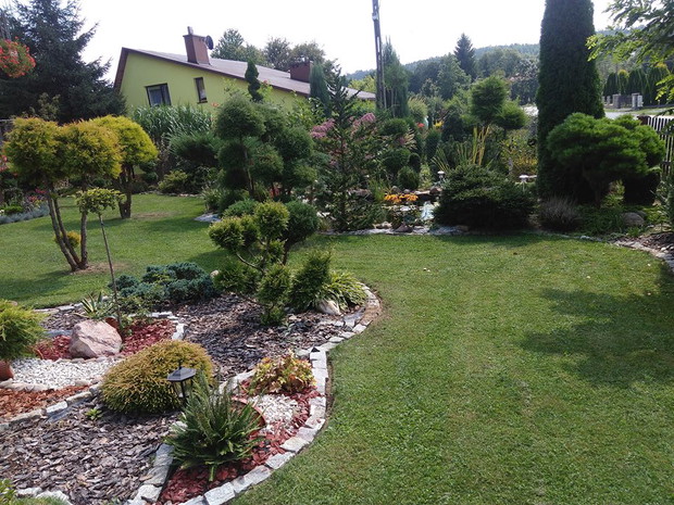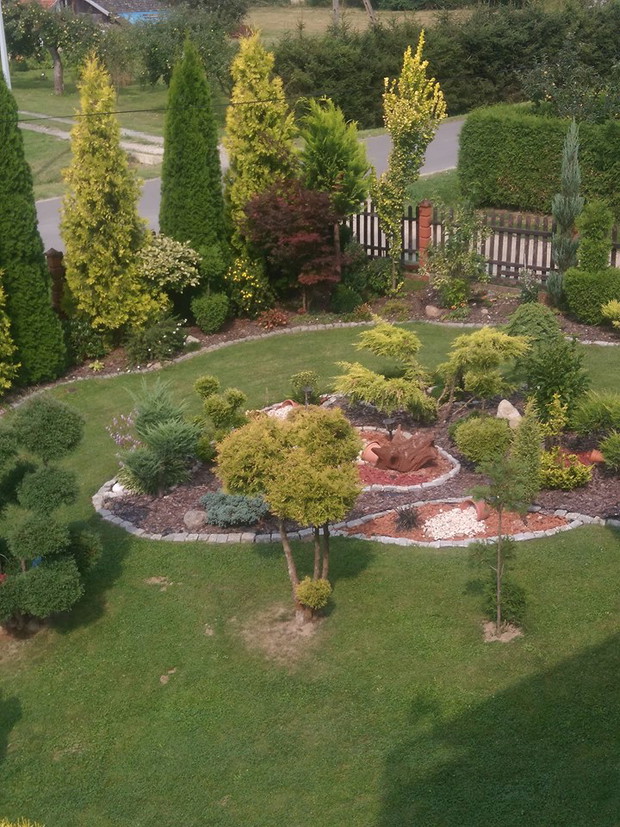 Moja przygoda z ogrodnictwem trwa od nieco ponad 20 lat. Zaczęło się niewinnie od kilku krzewów, bylin, skalniaków i kwiatów kwitnących. Znajomi zauważyli, że kocham kwiaty, więc na każdą możliwą okazję dostawałam jakąś piękną roślinę, której nie miałam (za co z całego serca dziękuję). Ogród z roku na rok stawał się prawdziwą pasją, więc jeśli widziałam gdzieś ciekawą roślinę nie mogłam się oprzeć żeby jej nie kupić, mimo że czasami "nie było za co". I tak z małej rabatki zrobiły się rabaty wokół domu i żałuję, że nie mam już miejsca, bo na pewno nie przestałabym na tym. Większość iglaków szczepię sama, obecnie nie mam już gdzie sadzić, więc daję znajomym. Największą frajdę sprawia mi przycinanie krzewów no i oglądanie jak z dnia na dzień ogród się zmienia. Mąż zrobił między innymi altanę, huśtawkę, ławeczkę, dzięki którym możemy całą rodziną miło spędzać czas. Dbanie o ogród traktuję jako relaks, wyciszenie i naładowanie baterii. Zapraszam do obejrzenia galerii w tym roku, mam nadzieję ze Wam się spodoba. Pozdrawiam, Janina.