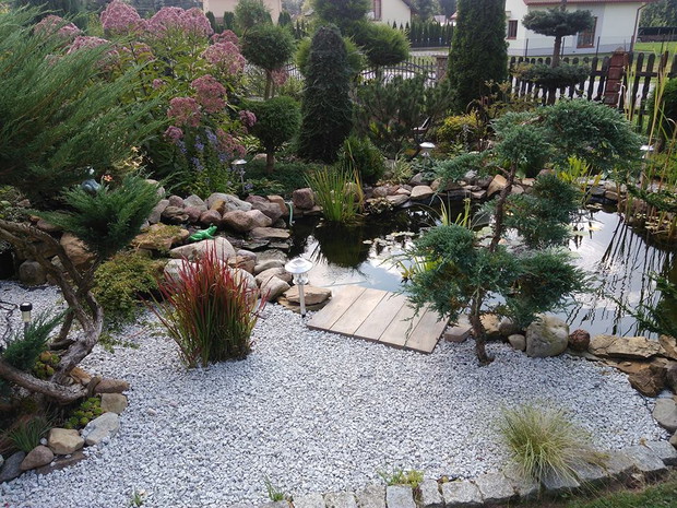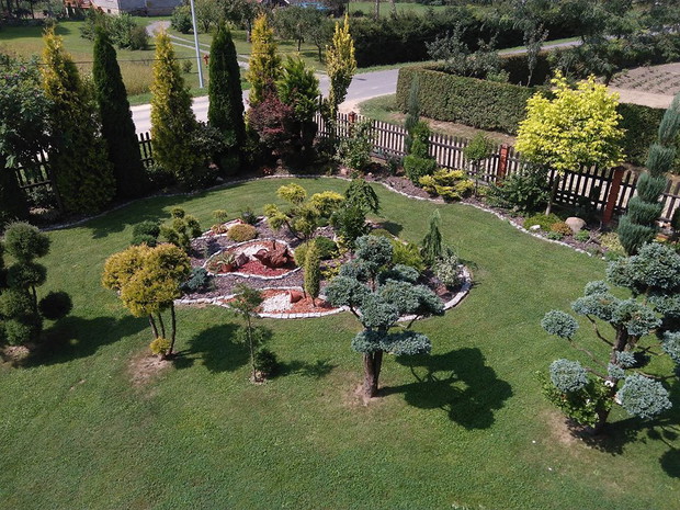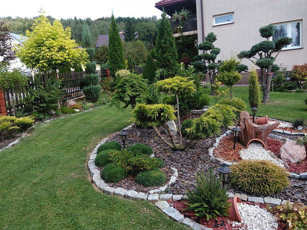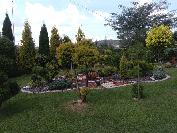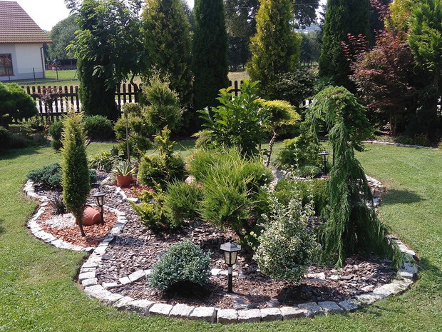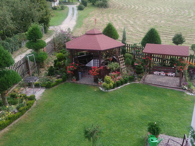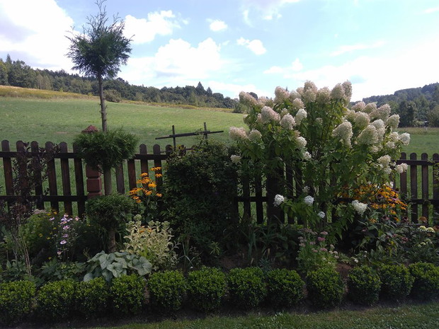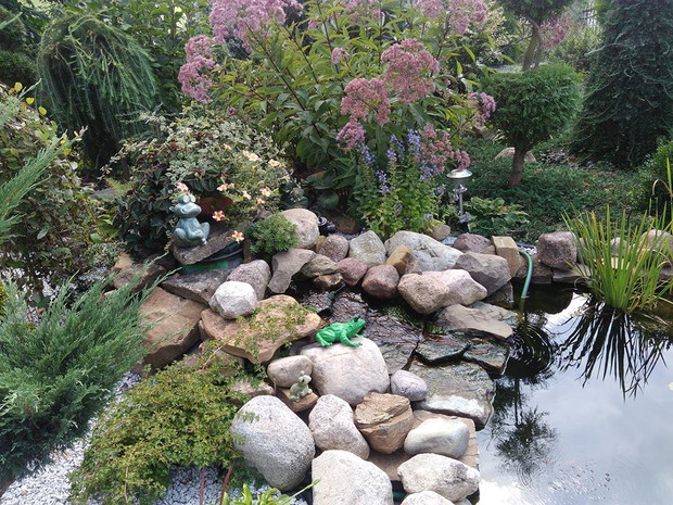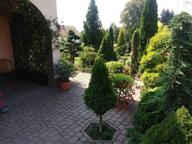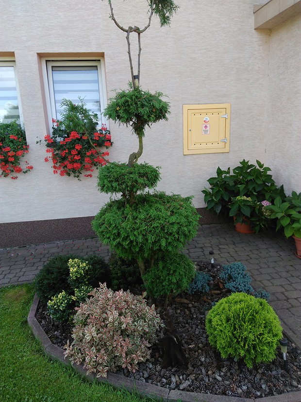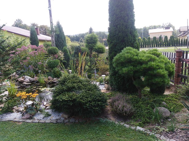 Moja przygoda z ogrodnictwem trwa od nieco ponad 20 lat. Zaczęło się niewinnie od kilku krzewów, bylin, skalniaków i kwiatów kwitnących. Znajomi zauważyli, że kocham kwiaty, więc na każdą możliwą okazję dostawałam jakąś piękną roślinę, której nie miałam (za co z całego serca dziękuję). Ogród z roku na rok stawał się prawdziwą pasją, więc jeśli widziałam gdzieś ciekawą roślinę nie mogłam się oprzeć żeby jej nie kupić, mimo że czasami "nie było za co". I tak z małej rabatki zrobiły się rabaty wokół domu i żałuję, że nie mam już miejsca, bo na pewno nie przestałabym na tym. Większość iglaków szczepię sama, obecnie nie mam już gdzie sadzić, więc daję znajomym. Największą frajdę sprawia mi przycinanie krzewów no i oglądanie jak z dnia na dzień ogród się zmienia. Mąż zrobił między innymi altanę, huśtawkę, ławeczkę, dzięki którym możemy całą rodziną miło spędzać czas. Dbanie o ogród traktuję jako relaks, wyciszenie i naładowanie baterii. Zapraszam do obejrzenia galerii w tym roku, mam nadzieję ze Wam się spodoba. Pozdrawiam, Janina.