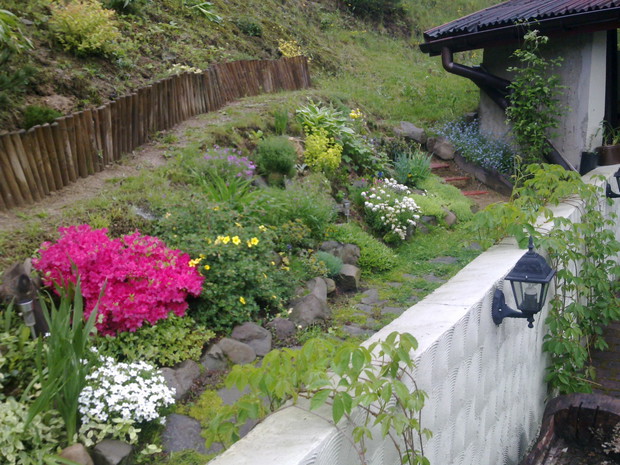 Mój ogród założyłam w 2011 roku ,ciągle coś się w nim zmienia, dosadzam nowe kwiaty i krzewy, przesadzam te którym nie odpowiada aktualne miejsce, ponieważ działka jest na nierównym terenie ,napotykam na trudności w zagospodarowaniu ogrodu, ale lubię wyzwania więc nie martwi mnie to, uwielbiam kwiaty więc cieszy mnie praca w moim ogrodzie.