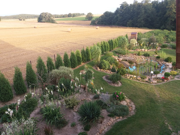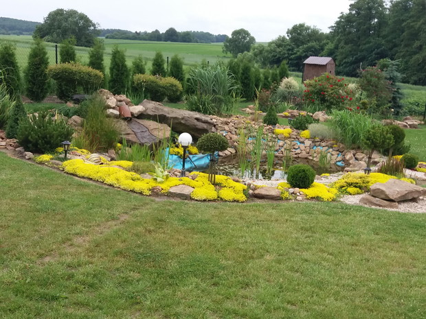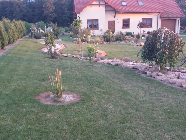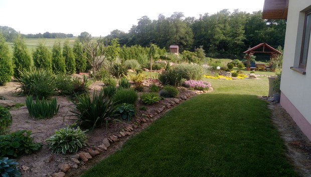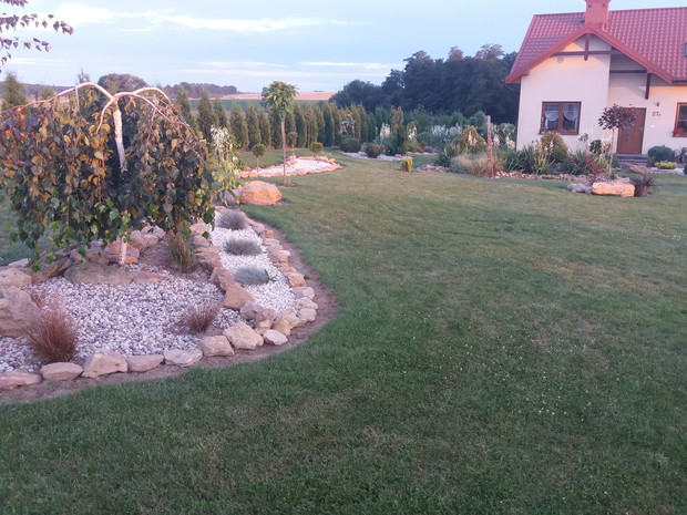 To mój piękny ogród nad którym z mężem pracowałam trzy lata nazwaliśmy go "Kamienny ogród"dlatego że jest w nim bardzo dużo naturalnych kamieni zbieranych z naszego pola.Kochamy bardzo różne krzewy kwiaty ozdobne które posadziliśmy.Ciągle pielęgnuje ogród i inwestuje w nowe kompozycje."Ogród jest dla mnie relaksem i spełnieniem marzeń. Justyna Struminska pozdrawiam.