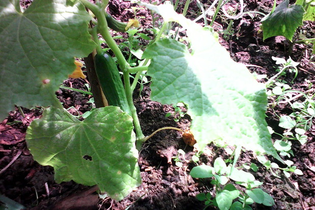 Ogorki,ktore mialam podadzone nasionka w marcu,rosly mi w doniczkach,w kwietniu przesadzilam do szklarni i juz jest pierwszy ogoreczek,pycha takie swoje swiezutkie..............................na mizerie..................................................................................................