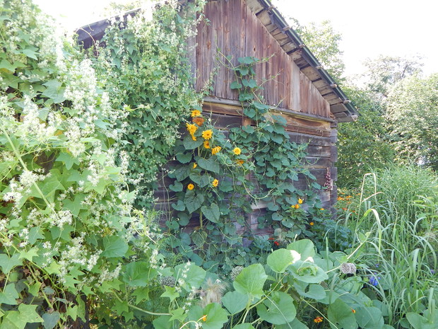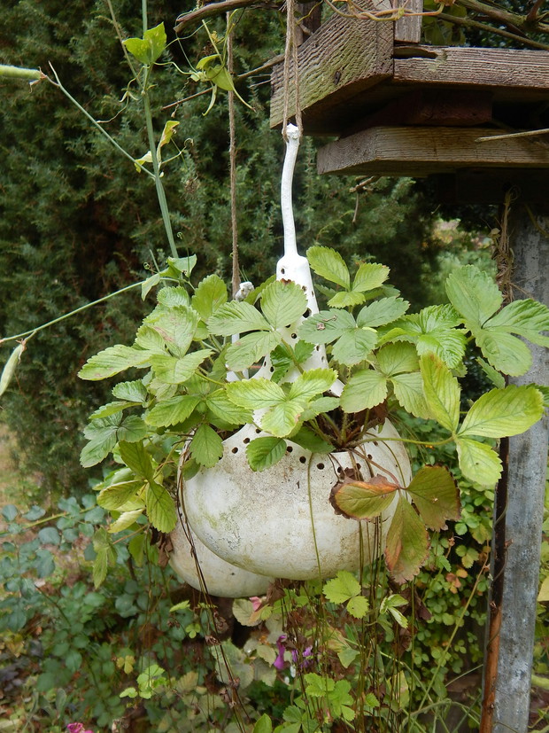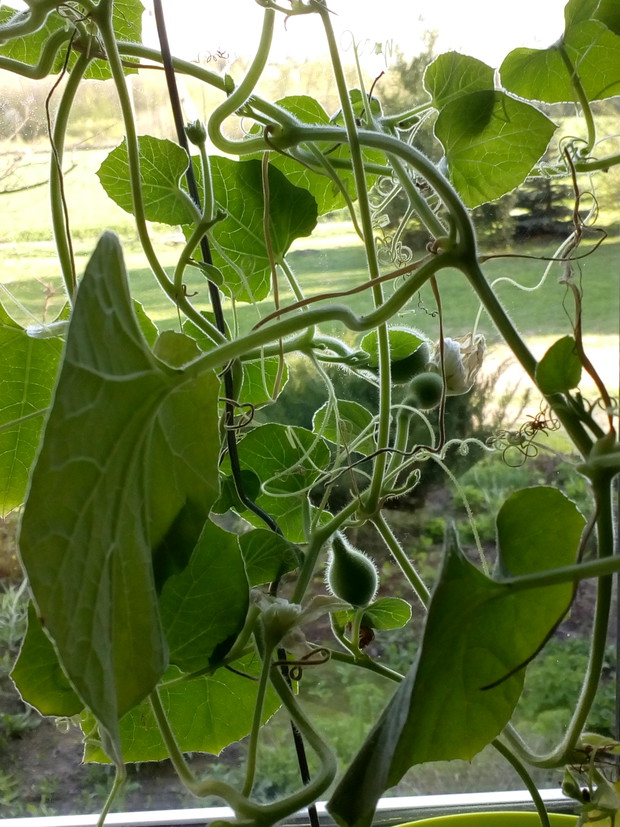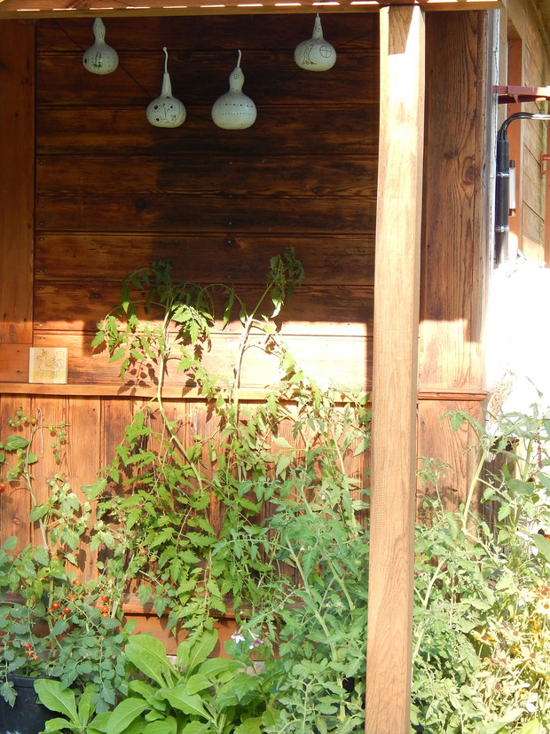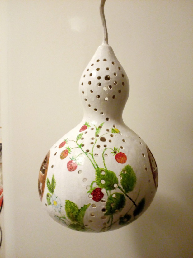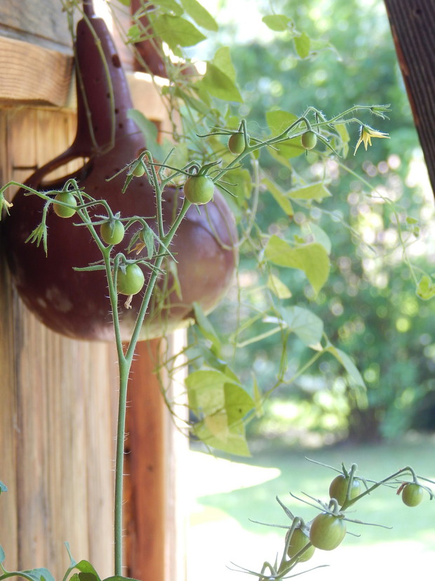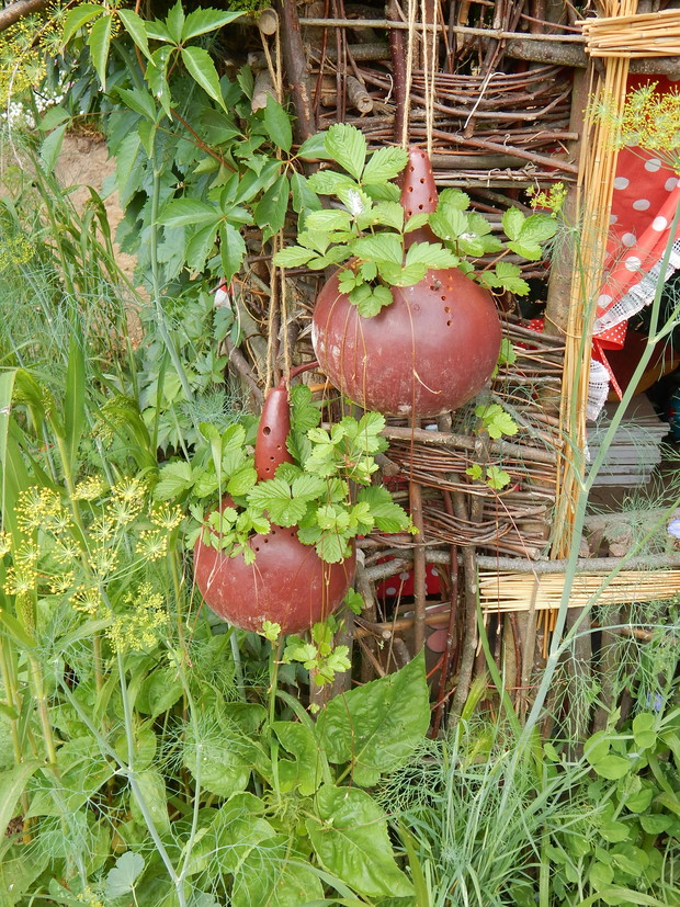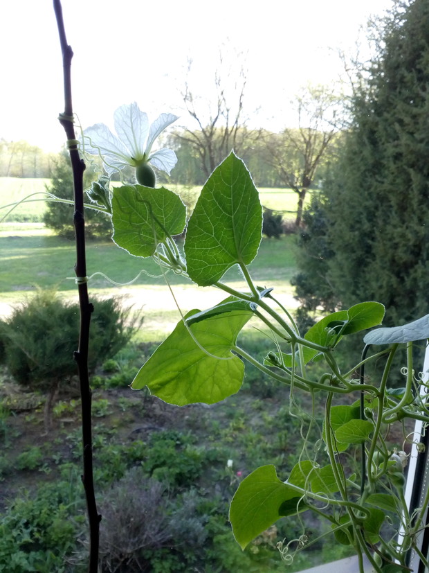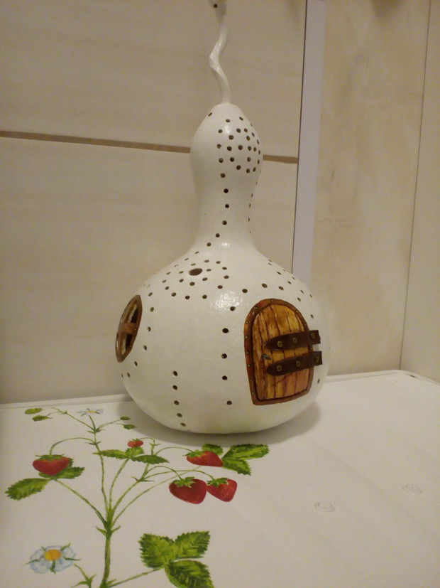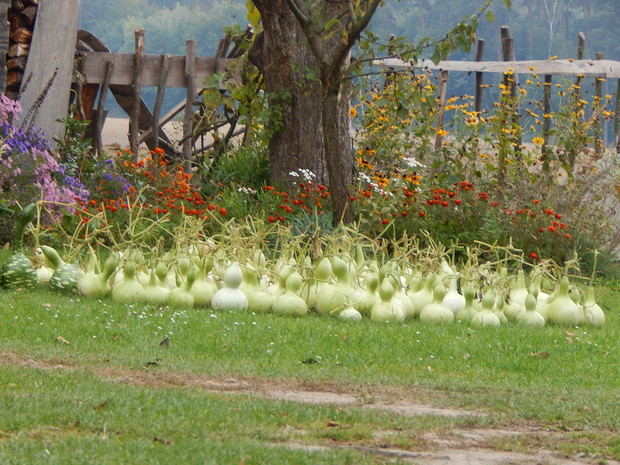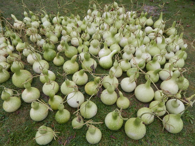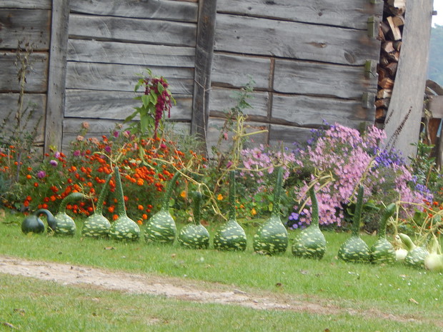 Tykwa z rodziny dyniowatych zaskakuje swoją egzotycznością. Ta nietypowa dynia urzekła mnie swoim wyglądem przed dwoma laty, kiedy zupełnie przypadkiem trafiłam na jej nasiona w ogrodniczym sklepie. Wówczas z 10 ziarenek uchowało mi się zaledwie 2 krzaczki, bo jak się okazało jest dość wybredną rośliną jeśli chodzi o stanowisko... No i ta "żarłoczność" tykwy - śmiało można ją wysadzić w pryzmie kompostowej bo tam poczuje się najlepiej...a przynajmniej u mnie tak było :) Ciepłe, żyzne i wilgotne stanowisko sprawia, że roślina jest w stanie wydać nawet kilkanaście dorodnych beczułek na jednej roślinie...Co potem? Można wykorzystać je do dekoracji jesiennych, bądź uzbroić się w cierpliwość i poddać je procesowi suszenia...Najlepiej w suchym, ciepłym pomieszczeniu, ale nie bezpośrednio przy źródle ciepła, np na kaloryferze, bo zbyt szybkie suszenie może spowodować pomarszczenie dyni. U mnie najlepiej sprawdza się pomieszczenie kotłowni, gdzie tykwy swobodnie zwisają z umocowanych nad piecem drążków. Kiedy wiadomo że tykwa jest sucha? Otóż jak jest lekka i grzechocze przy potrząsaniu :) Wystarczy zrobić niewielki otwór w dyni by dojrzeć , że wewnątrz jest pusta i ma tylko same nasiona, które nadają się do wysiewu na kolejny sezon...Natomiast pusta skorupa jest idealnym materiałem do tworzenia lampionów, abażurów, naczyń...no właśnie co komu w duszy gra... Ps. Zapomniałam dodać - można też jeść tykwę, ale tylko młode, miękkie egzemplarze ;)