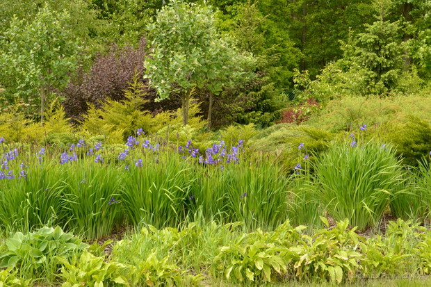 Ogród z dwoma stawami. Mój mały kawałek raju na ziemi. Niestety części roślin jeszcze nie znam, ale mam nadzieję, że szybko to naprawię. Staram się utrzymać go sama bez pomocy ogrodnika. Jest to duże wyzwanie gdyż ogród ma 0,5 ha. O każdej porze roku wygląda on niesamowicie. Zimą powstaje na nim mnóstwo figur po uschniętych trawach, które są ścinane wczesną wiosną.