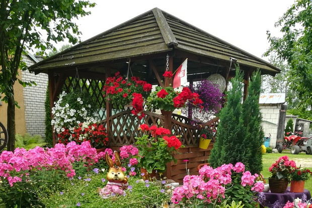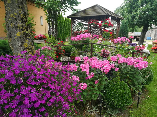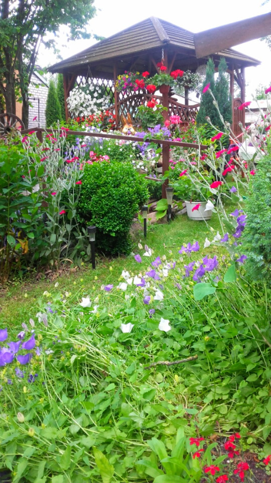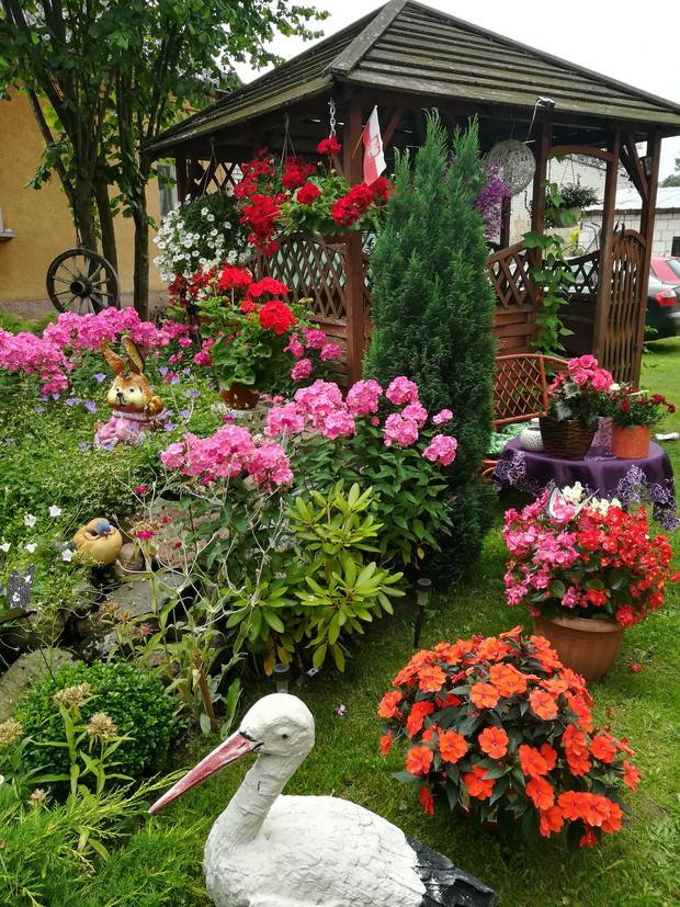 Mój zakątek. Miejsce niezwykłe w którym spędzamy dużo czasu z rodziną i znajomymi. W śród tych kolorowych kwiatów i śpiewu ptakow mamy Możliwość odpoczynku, wyciszenia , spokoju odetchniecia świeżym powietrzem. Praca w nim daje mi wielką przyjemnosc dzięki temu zapominam o problemach dnia codziennego. Na środku ogrodu stoi altana. Dokoła niej kwiaty. Tuż przed nią oczko wodne z mostkiem. Po prawej stronie huśtawka. Uroku dodają także zwierzątka ktore stoją w moim ogrodzie.