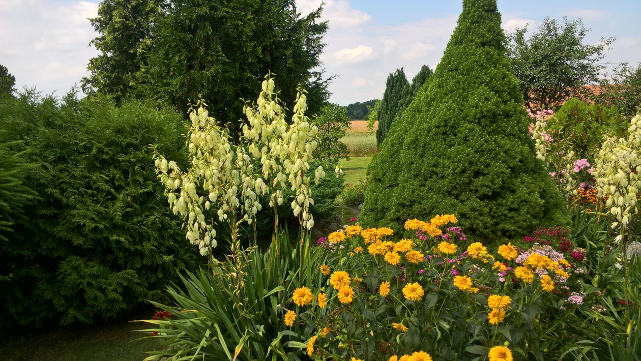 Mój cudowny raj na ziemi jest w rodzinnym domu- to miejsce , które powstaje już 30 lat. Razem z kochanymi rodzicami i mężem dbamy, pielęgnujemy, sadzimy...Jest w nim tak ogromna liczba roślin, że nie wiem , czy wystarczyłoby miejsca, aby je wszystkie tu wymienić ;).To nie jest ogród "pod linijkę ". To miejsce, gdzie od wczesnej wiosny do późnej jesieni stale coś kwitnie, gdzie przylatują pszczoły i motyle, a cała masa ptaków buduje gniazda i wychowuje pisklęta.To miejsce, gdzie w ciszy i spokoju można odetchnąć (również w upalny dzień), gdzie akumulatory ładują się w expressowym tempie, a każda roślinka jest symbolem miłości i wspólnego dbania o to miejsce.