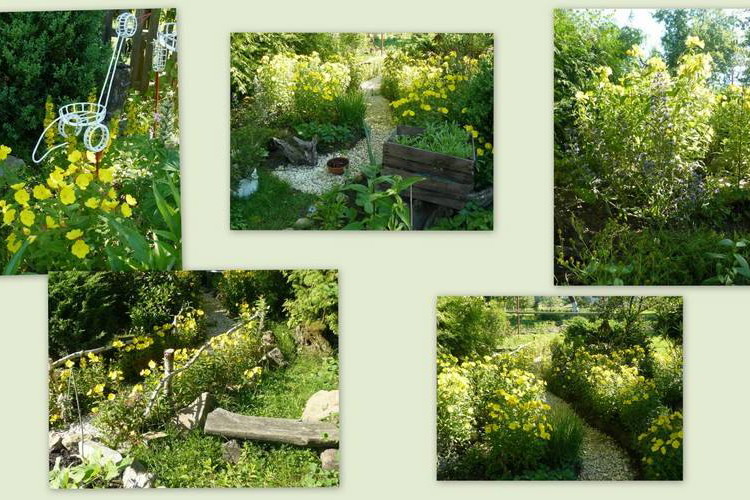 Na zdjęciu znajdują się wiesiołki,są to moje ukochane kwiaty,obok jest ławeczka na której siadam by odpocząć.Jest też ścieżeczka z kamyczków między grządkami...przynosi mi wiele radości...Jest taki płotek brzozowy nad wiesiołkami,który bardzo pięknie komponuje się z tymi roślinkami........................................................................................................................................
