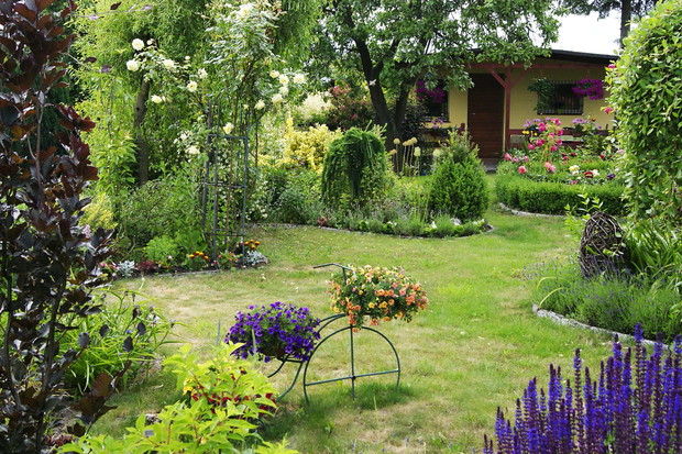 Moja fascynacja roślinami, działką, zaczęła się bardzo dawno temu.Było to dobre 20 lat temu, a miałem wtedy 12 lat.Już od wczesnych lat mojego dzieciństwa zawsze interesowały rośliny, zwłaszcza małe, kolorowe kwiatki na trawnikach i przy drogach.I tak moja przygoda z roślinami rozwija się aż po dziś dzień.Uczyłem się wszystkiego sam, na zasadzie prób i błędów.I to tam ujawniły się moje pierwsze upodobania roślinne.Rośliny jednoroczne, byliny i oczywiście róże. . Wzór angielskich rabat był i nadal jest dla mnie inspiracją, jest to moja mała namiastka prawdziwego ogrodu. .Działka ma prawie 600 m2.I już teraz jest za mała, bo jest tyle nowych roślin i odmian.Uprawiam ją już prawie 10 lat, a wydaje się, że to chwila.Bo jeśli robi się coś co się kocha, to czas stoi w miejscu.Tak też zamiłowanie, pasja ogrodnictwa, stała się moim zawodem, i dalej uczę się tego zawodu w pracy. Główną część działki zajmują rabaty z roślinami ozdobnymi, byliny, krzewy ozdobne, rośliny jednoroczne, i ukochane róże. Największą radość sprawiają zawsze pierwsze wiosenne prace, kiedy to człowiek spragniony jest świeżego powietrza, odgłosu śpiewających ptaków, a nawet umazanych od ziemi rąk po same łokcie.To właśnie marzec, kwiecień jest dla ogrodnika najlepszy czas.Wtedy przyroda budzi się do życia i wybucha.Praca i odpoczynek, to to jest właśnie to o co chodzi na działce.Bo kiedy działkowiec się napracuje, kiedy się pobrudzi i zmęczy, a potem odpocznie wtedy czuję się szczęśliwy.