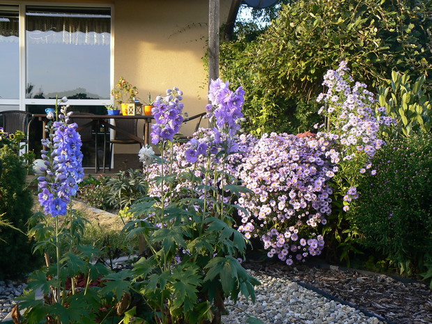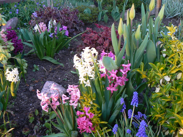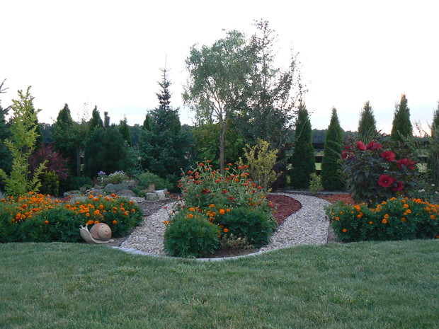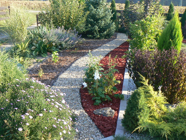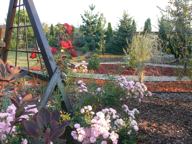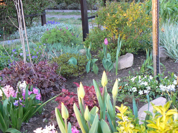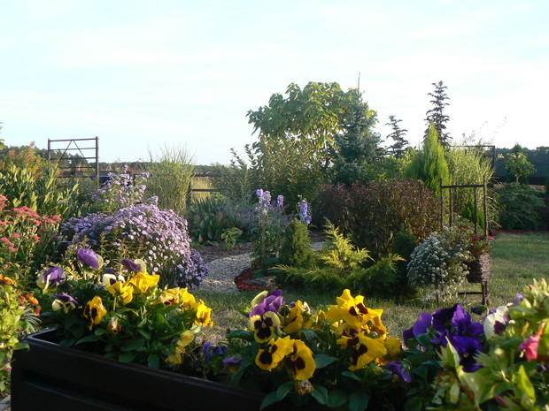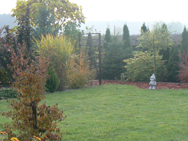 Mój przydomowy ogród, ciągle jeszcze pełen chaosu, spontanicznych pomysłów i inspiracji, jest moją wielką odskocznią od codzienności. Ciągle go udoskonalam, ciągle coś w nim zmieniam, pomysł goni pomysł i tak naprawdę jedyne, czego mi w nim brakuje, to wolne miejsce na kolejne realizacje. Tworzę go od około 5 lat, wcześniej była w tym miejscu dzika, zielona łąka. W jego powstanie włożyłam mnóstwo pracy, ale satysfakcja z chwil w nim spędzonych rekompensuje mi cały mój wysiłek, wylany na glebę pot, zdarte kolana i połamane paznokcie. To moja wielka pasja, gigantyczna radość i ogromne zadowolenie.A moje roślinki chyba odwzajemniają te moje uczucia, bo dają z siebie wszystko, na co tylko je stać. Załączone zdjęcia pokazują mój ogród w różnych porach roku, poczynając od ubiegłorocznej jesieni, poprzez minioną wiosnę, aż do chwili obecnej.