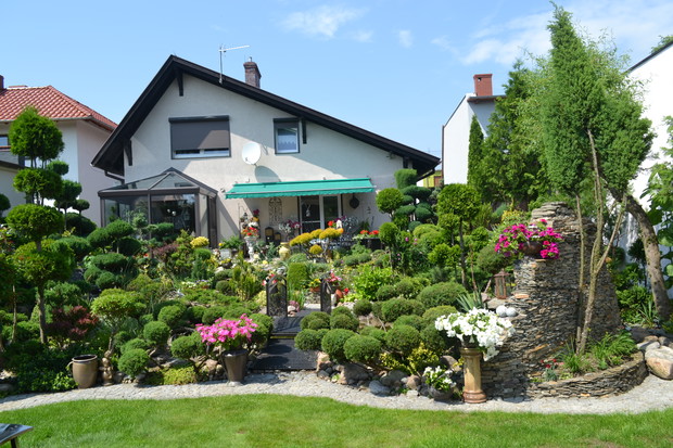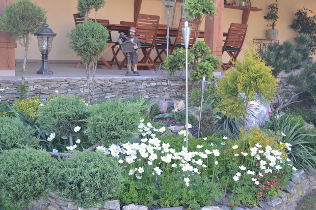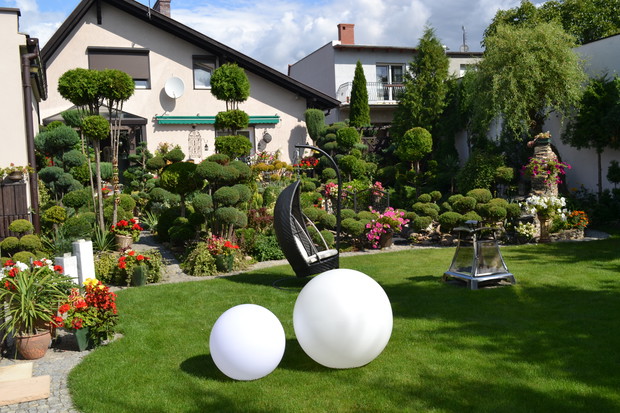 Mieszkamy w niewielkiej miejscowości w województwie wielkopolskim. Ogród powstaje sukcesywnie od 1999r. , gdy zamieszkaliśmy w nowo wybudowanym domu. Powierzchnia naszej działki wynosiła wtedy 913m2. W 2007r. kupiliśmy działkę znajdującą się tuż obok naszej posesji. Połączyliśmy teren, zagospodarowaliśmy i ostatecznie teren naszego ogrodu wynosi 2000m2. Wykorzystaliśmy różnicę poziomów ukształtowania terenu i tak powstały kamienne skarpy porośnięte zielenią. W naszym ogrodzie spędzamy każdą wolną chwilę. Sama przycinam drzewa i krzewy. Sami też zajmujemy się pielęgnacją naszego ogrodu. Ogród to moje życie - jest lekarstwem na wszelkie dolegliwości.