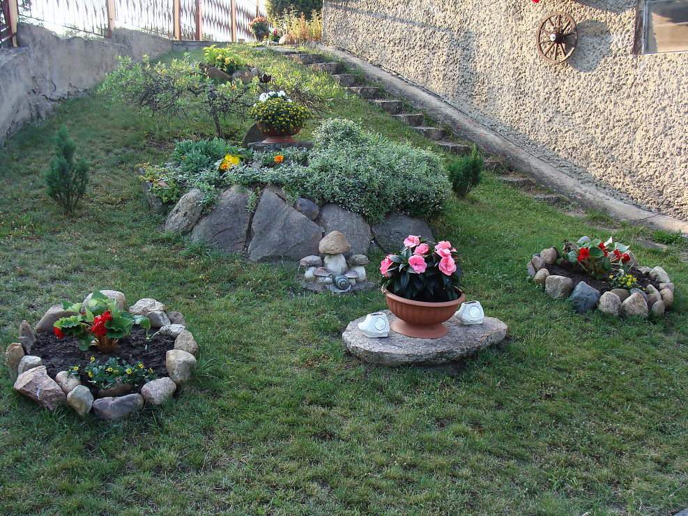 • Mój przydomowy ogródek to nie tylko doskonałe miejsce do wypoczynku, ale i do realizacji moich ogrodniczych pasji :) W zależności od pory roku kwitną tu tulipany, goździki, hiacynty czy też moje ulubione wiesiołki. Ponadto, co roku wysadzam w doniczkach kwiaty sezonowe jak pelargonie, koleusy, dalie, begonie czy też moje ulubione surfinie. Co roku mój przydomowy ogródek się zmienia i nabiera nowego wyrazu. Nic tak nie cieszy jak zadowoleni domownicy oraz goście, którzy chętnie spędzają czas w moim przydomowym ogrodzie.Każdego roku od wiosny do jesieni poświęcamy z mężem dużo czasu na pracę w ogrodzie, przynosi nam to jednak ogromną satysfakcje ,radość i odprężenie . W upalne dni miło jest ukryć się w zacienionym miejscu ogrodu i delektować się letnimi zapachami a wieczorami spotkać się z rodziną i znajomymi na grillu.