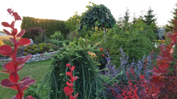 Moja pasja z ogrodnictwem zaczęła się 3 lata temu kiedyś mój ogród to tylko iglaki i trawa. Dzisiaj nie wyobrażam sobie ogrodu bez pięknych drzew, kolorowych bylin i ukochanych traw. Działka przy domu jest duża więc można dać upust swoim marzeniom. Z roku na rok powstają nowe rabaty i zakątki . Ciągle jest coś w planach. Przy cięższych pracach pomaga mi mąż i to on zajmuje się ogrodem warzywnym i sadem. Dla mnie najważniejsza jest część ozdobna ogrodu i właśnie nią się głównie zajmuje. Planuje wszystkie nasadzenia jednak zdarzają się też spontaniczne zakupy i wtedy długo przestawiam doniczki aż znajdę dla nich odpowiednie miejsce. Uwielbiam ogród za jego zmienność o każdej porze roku ma coś do zaoferowania. Wiosną piękne kwiaty cebulowe, magnolie i bzy a później już wszystko bucha kolorami koniec lata to uwielbiane hortensje i kołyszące się na wietrze trawy. Zimą mam czas by zrobić plany na kolejny rok ogrodniczy. Moimi inspiracjami do planowania nowych nasadzeń i rabat są czasopisma i liczne strony internetowe i blogi. Jeżdżę również na targi ogrodnicze jeżeli tylko czas mi na to pozwala. W moim ogrodzie jest zakątek brzozowy , skalniaki , rabata z wiązem w trakcie budowy zakątek śródziemnomorski i kolejny brzozowy . W ogrodzie jest również zakątek z boiskiem dla dzieci. Ogród to nie tylko praca tutaj odpoczywamy z rodziną i delektujemy możliwością obcowania z naturą.