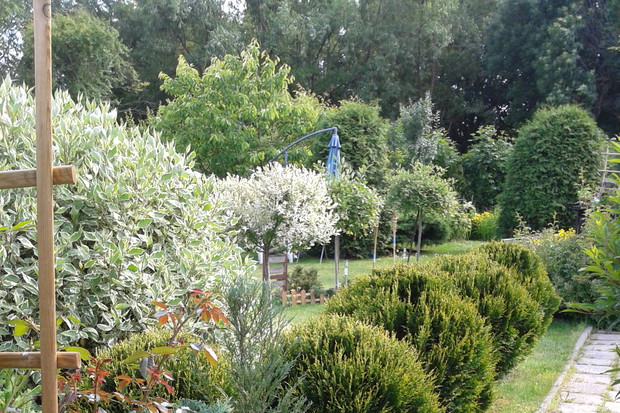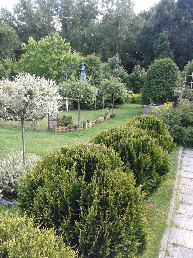 Trzy lata temu postanowiłam realizować swoje marzenia. Wstąpiłam w szeregi działkowców nabywając prawa do dzierżawy 500 metrów kwadratowych ziemi, właściwie ugoru :( Uczę się korelacji z naturą, korzystam przede wszystkim z fachowej literatury, tematycznych programów TV i doświadczenia ogrodników :) Mój raj odległy 3 km od miejsca zamieszkania jest czasem zaniedbywany przeze mnie ... praca zawodowa, dom i takie tam ... nie pozwalają mi na stały kontakt z ... jednakże kiedy przybywam, witam każdy zakątek, dotykam każdą roślinkę, cieszę się jak małe dziecko :))) Jako służba zdrowia ograniczona finansowo, tworzę sama drobne elementy architektoniczne takie jak grill, ławeczka, stoliczek, podpory pod krzewy, kamienne obwódki itp. Tu też muszę się pochwalić zdobytą nagrodą działkowców za ogródek rekreacyjny, powstały w krótkim okresie ... jestem dumna i zmobilizowana do działania. Mam nadzieję, że w najbliższym czasie ukażę swoje królestwo w pełnej krasie i zachwycę ... :) Przepraszam za zdjęcia ale to dokumentacja komórkowa. Kiedy już uznam, że dotykam pięt mistrzów :) zaproszę fotografa - artystę by zaprezentował godnie urodę natury, którą będę starała się kształtować, wzbogacać, ujarzmiać w sposób estetyczny i ciekawy dla oka. Więc dziś tylko niezdarne fotki i deklaracja oraz nadzieja, że marzenia staną się rzeczywistością. Pozdrawiam i dziękuję za chwilę uwagi - Mirka