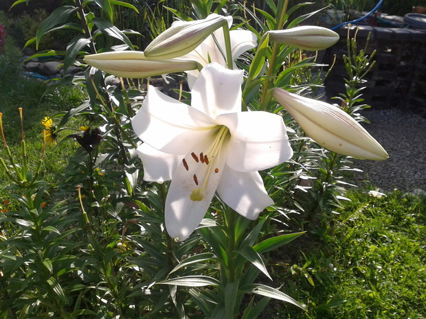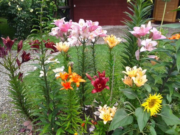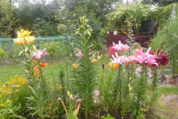 Wraz z Żoną uprawiamy działkę na Rodzinnym Ogrodzie Działkowym. Działkę traktujemy jako rekreacyjną z nasadzeniami krzewów jagodowych i drzewek owocowych oraz kwiaty. Z kwiatów to dalie, cynie, piękne róże okrywowe, tulipany, żonkile i lilie. Na pokazanym poletku wczesną wiosną najpierw zakwitają żonkile i tulipany a potem lilie o różnych porach kwitnięcia, dlatego też poletko jest ukwiecone całe lato.