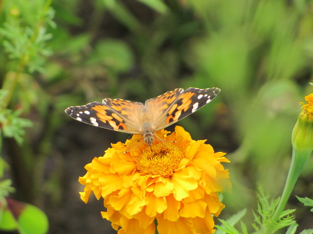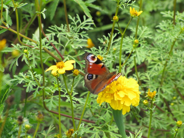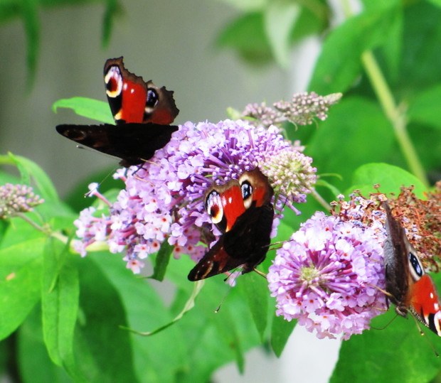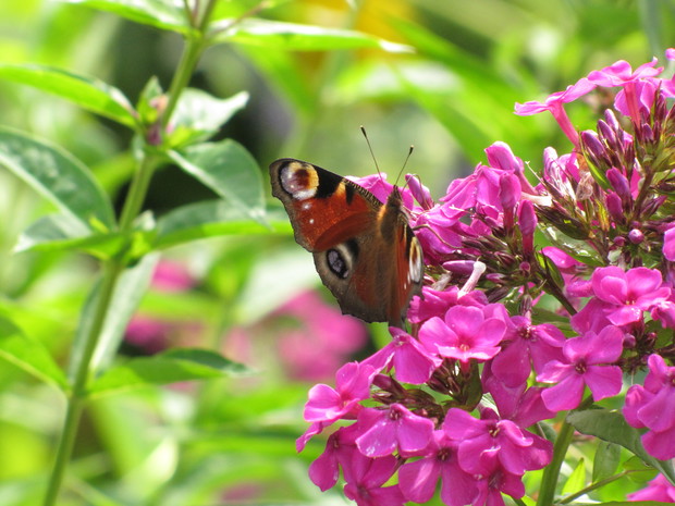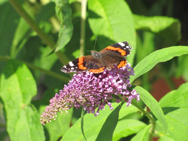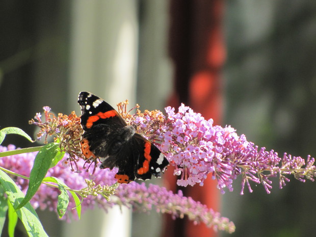 Motyle, które tak licznie zaatakowały w tym roku nasz ogród, stały się moim punktem zainteresowań w minionych dniach.Budleja Dawida, floksy, zioła, aksamitki to rośliny, które przyciągają je najbardziej. Zaledwie w ciągu kilku dni udało mi się zaobserwować sześć gatunków: rusałka admirał, rusałka osetnik, rusałka pawik, bielinek kapustnik, bielinek rzepnik, przestrojnik Justina.