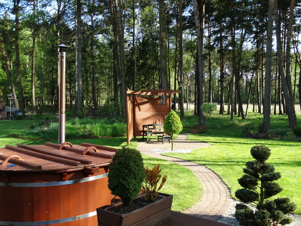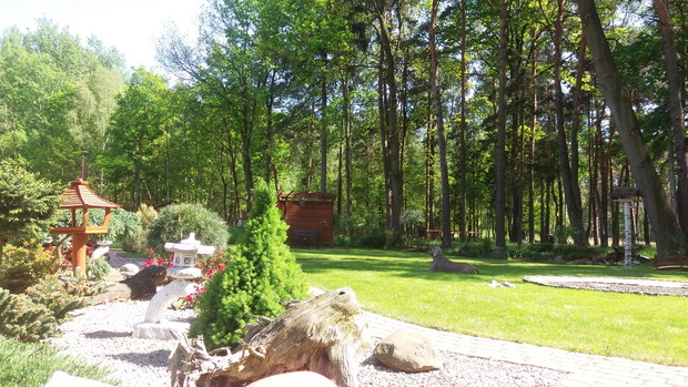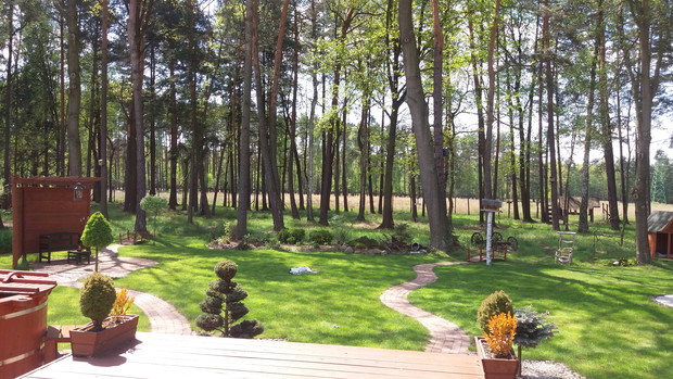Przedstawiam nasz leśny ogród i mojego ogrodnika doskonałego, w osobie mojego męża Dba on o to aby zbytnio nie ingerować w leśną przyrodę ale cieszyć wraz z nią. Do naszego ogrodu zapraszamy różne gatunki ptaków przez stworzone budki lęgowe, sadzimy miododajne rośliny aby przybyły trzmiele i pszczoły. Zza siatki leśnej obserwujemy sarny, daniele, żurawie i inne zwierzęta. Cudownie prowadzić dialog z przyrodą, słuchać śpiewu ptaków i ciszy, zbierać poziomki, jagody i własne grzyby. Chcieliśmy aby to miejsce stopiło się poprzez oszklenia z krajobrazem leśnym. Ogród wraz z lasem ma ponad 60 arów, sukcesywnie stwarzamy nowe elementy dekoracyjne i nowe aranżacje w zależności od pór roku. Częściej posługujemy się starociami-takim jak elementy wozów, stare donice, wiadra kanki. Tworzymy sami kompozycje kwiatowe i zielne. To miejsce ten ogród jest naszą ostoją