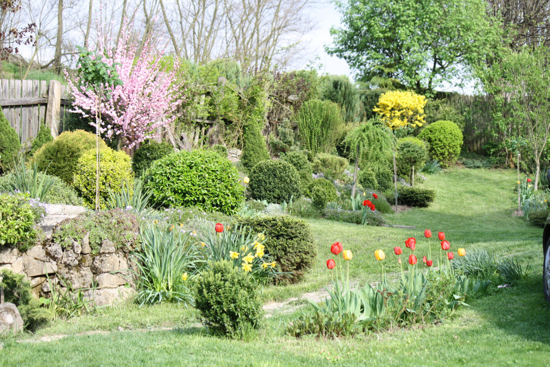 Ogród położony jest w woj. Świętokrzyskim, w okolicach Opatowa. Składa się z dwóch części. Sadu z ponad stuletnimi jabłoniami oraz części przydomowej. Umowną granicę pomiędzy nimi stanowi oczko wodne, które znajduje się u podnóża skarpy na której stoi dom. Dno oczka jest naturalne. Biją w nim trzy źródła, a woda odpływa przez ogród do rzeki Opatówki. Powstawało ono kilka lat. Gdy byliśmy dziećmi i przyjeżdżaliśmy na wakacje do babci, powiększaliśmy je i obserwowaliśmy żyjące w nim organizmy. W tej chwili, brzegi są wyłożone czarną włókniną i kamieniami co zapobiega przerastaniu chwastami. Nad oczkiem lubimy wypoczywać na ławkach lub kocu położonym na trawie i obserwować karmione ryby, których jest około 35. Wokół domu znajduje się wiele roślin i kwiatów, które kwitną od wiosny do jesieni. Mamy tu mi in. kilkanaście krzewów róż, które są ulubionymi kwiatami mojej mamy. Kolekcja ta ciągle się powiększa. Wejście do domu zdobią fuksje, pelargonie, sundaville oraz hortensję, które w zimie przechowujemy w chłodnej piwnicy. Nasz ogród ciągle się zmienia, przybywa nowym roślin, powstają nowe rabaty lub robimy przebudowę starych. Na działce znajduję się również przydomowy warzywnik, mała winnica z odmianami deserowymi takimi jak Arkadia, Iza Zaliwska, Agat Doński, Muskat Letni. Mamy tu truskawki, poziomki, orzechy włoskie i laskowe, czereśnie, maliny i wiele innych. Pomimo iż, trzeba wiele pracy, aby ogród był zadbany, przynosi nam on wiele satysfakcji i chwil relaksu na łonie natury.