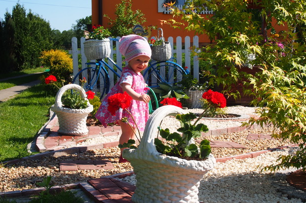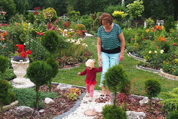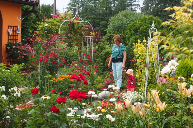 Ogródek jest dla nas drugim domem, gdyż od wczesnej wiosny do późnej jesieni spędzamy w nim całe dnie ale również zimą lubimy się w tam napić kubek gorącej kawy. Szczególnie tego roku spędzałam dużo czasu w ogrodzie, ponieważ moja wnuczka choć jeszcze mała uwielbia wielokrotne spacery po tych samych ścieżkach, widać, że wyrośnie z niej mała ogrodniczka. Ogród daje nam wiele satysfakcji i jesteśmy z niego naprawdę dumni i szczęśliwi, że go mamy.