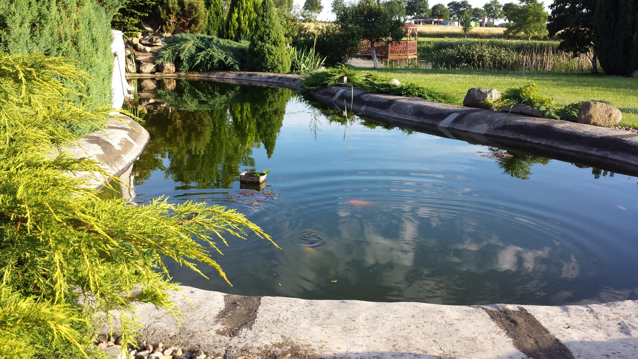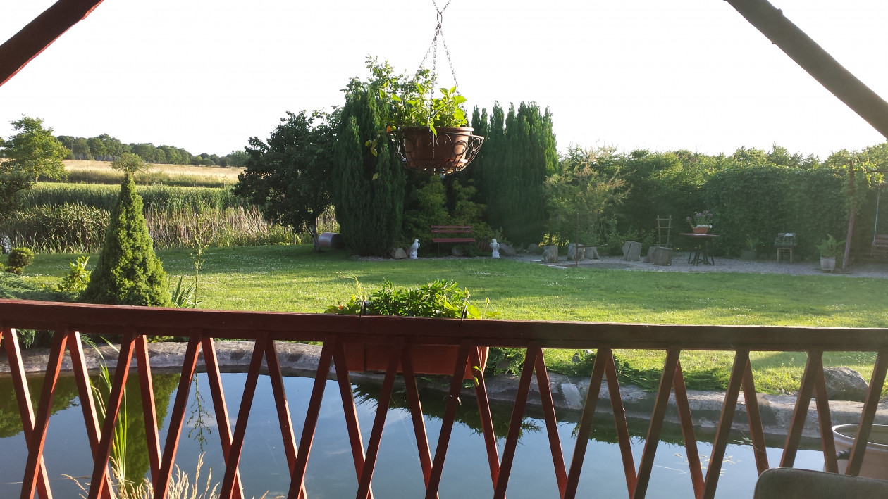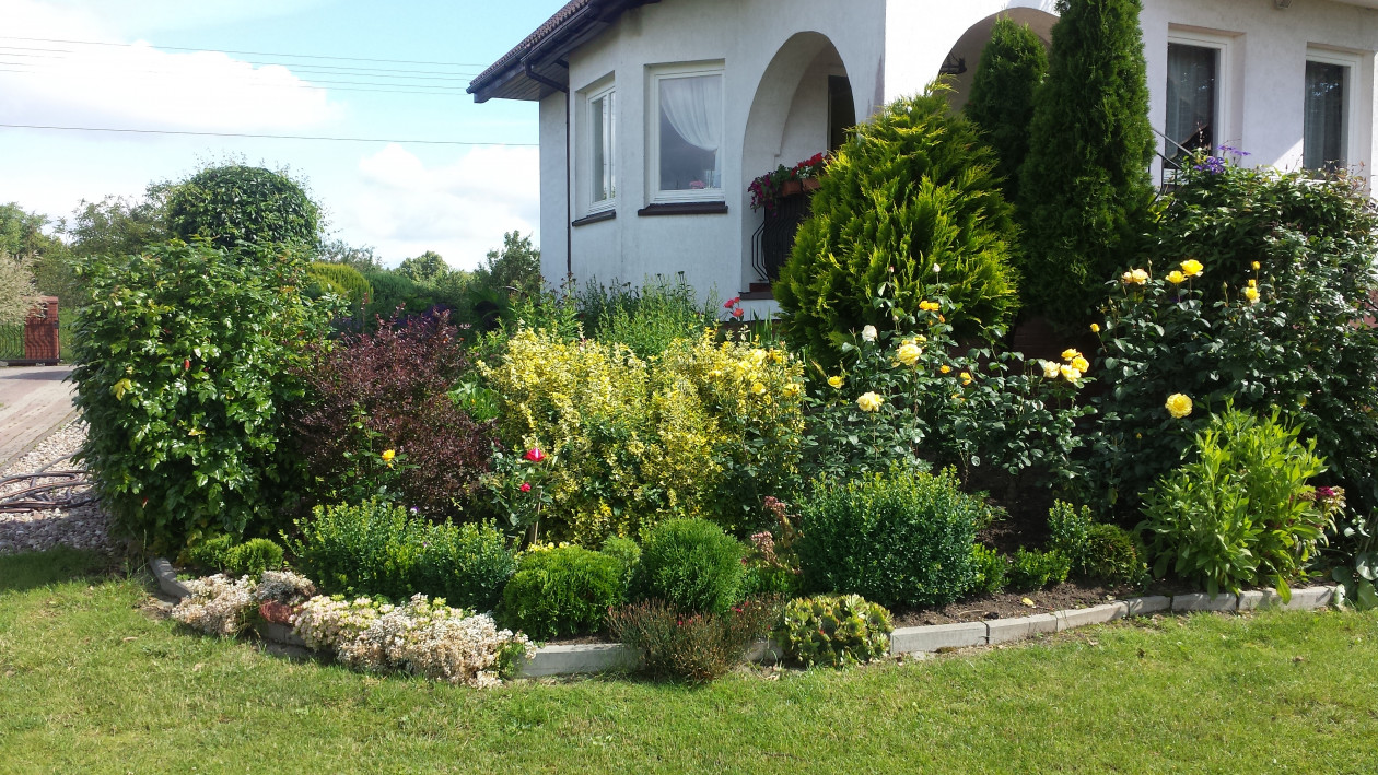 Działka nasza o pow. 1,5 ha wraz z własnoręcznie wybudowanym domem oraz ogrodem znajduje się w małej miejscowości Chociwel. Ogród ten tworzymy od 10 lat według własnych pomysłów choć często inspiracją były czasopisma ogrodnicze. Własnoręcznie wybudowaliśmy oczko wodne w którym znajdują się rybki ozdobne. Obok oczka została wybudowana duża otwarta altana, grill kamienny oraz wędzarnia. W wielu miejscach powstało wiele skalniaków jak i rabat kwiatowych które pochodzą z własnego rozsadnika. Na ogrodzie znajduje się również naturalny staw na którym wybudowaliśmy pomost wraz z przyłączoną altana gdzie w wolnych chwilach można łowić dość pokaźne ryby. W wielkim namiocie własnej konstrukcji rosną pyszne pomidory.Jest wiele przytulnych i ustronnych miejsc gdzie znajdują się ławki, hamak, huśtawka oraz miejsce na ognisko. Ogród to również sad owocowy oraz dość pokaźny warzywniak który przygotowywany oraz pielęgnowany jest zabytkowym sprzętem z lat 50-tych. Wiele prac na ogrodzie prowadzonych jest własnoręcznie stad tez pochłania to ogrom siły i czasu ale nagrodą jest widok kwitnących kwiatów i krzewów, odgłos rechotania żab, śpiew ptaków, krzyk dzikich kaczek jak i widok pływających łabędzi po stawie. Pracy jest wiele ale satysfakcji jeszcze więcej. Czytamy czasopisma ogrodnicze podziwiając rożne ogrody dlatego też pragniemy pokazać nasz kawałek raju na ziemi.