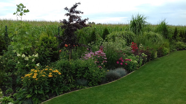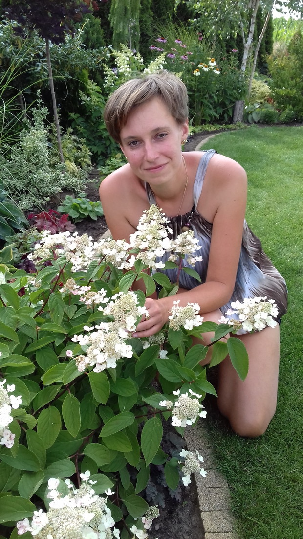 Nasz przydomowy ogród to raj na ziemi, miejsce relaksu i odpoczynku. Staram się, by z każdym rokiem był coraz piękniejszy. Dokupuje ciągle nowe rośliny, dosadzam i projektuje nowe zakątki. Jednak, by ogród pięknie wyglądał trzeba włożyć w niego mnóstwo pracy. Ulubionymi moimi bylinami są ciemierniki, trawy ozdobne oraz jeżówki. Zauroczyły mnie swoim niezwykłym kwiatostanem i kolorami. Poza tym jeżówki kochają owady. Codziennie obserwujemy mnóstwo motylii przylatujących do nich. Moje dzieci choć jeszcze małe mają fantastyczna lekcje przyrody w naszym ogrodzie. Ogród to nie tylko kwiaty, drzewa ozdobne ale także warzywa i owoce. Co roku uprawiam warzywa. Pomidory, ogórki i fasolka to priorytety wśród warzyw. W warzywniaku nie może zabraknąć sałaty, rzodkiewki, cebuli, czosnku, marchwi, kalarepy, pietruszki czy kopru. Dzieci chętnie pomagają pielegnować ogród, ale chyba najbardziej podjadać warzywa i owoce, których u nas nie brakuje. Świeże truskawki, maliny czy jeżyny smakują z krzaczka najlepiej. Dzieciom z zaprzyjaźnionego przedszkola organizuje lekcję przyrody właśnie w naszym ogrodzie. W wolnych chwilach tworzę dekorację do ogrodu, na taras, czy domu. Wyplatam wianki, robię koszyczki z szyszek, ozdoby w szkle z roślin z ogrodu. Cenię sobie takie naturalne dekorację, gdyż wnoszą trochę ciepła do naszego ogrodu lub wnetrza, a powieszone na drzwiach wejściowych witają gości odwiedzających nasz dom.