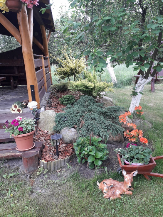 Mój ogród to miejsce stworzone przeze mnie i mojego męża. Altana wybudowana własnymi rękami to strefa relaksu i wyciszenia . W otoczeniu kwiatów, drzew i krzewów miło spędzamy chwile. Co roku dodajemy nowe elementy do kompozycji, sadzimy nowe krzewy i kwiaty. Dzięki temu cały sezon cieszymy się pięknymi kolorami i zapachami. W tej chwili wieczorami pięknie pachnie maciejka, a od rana czuć lilie i surfinie.