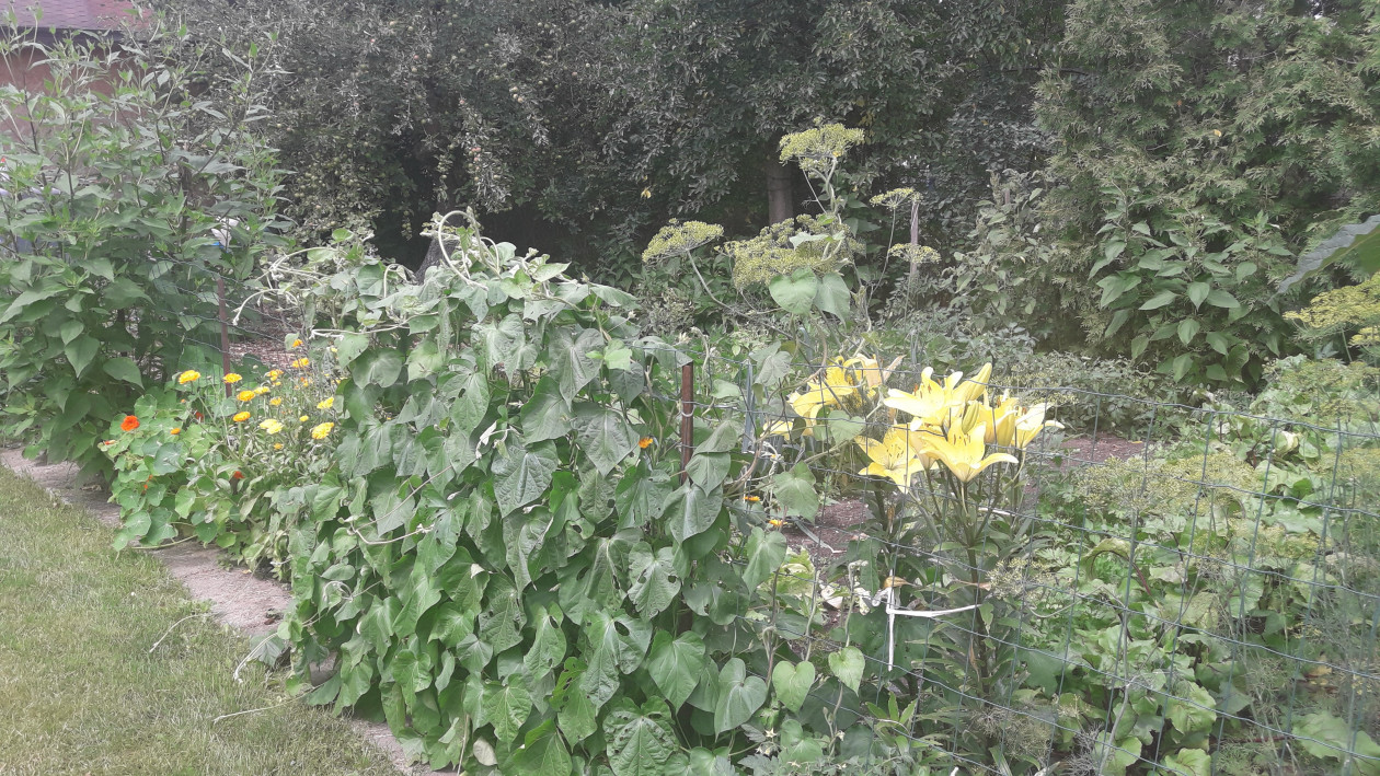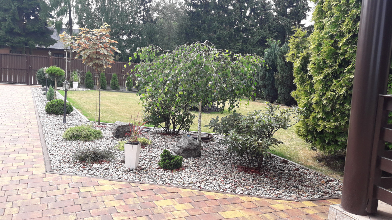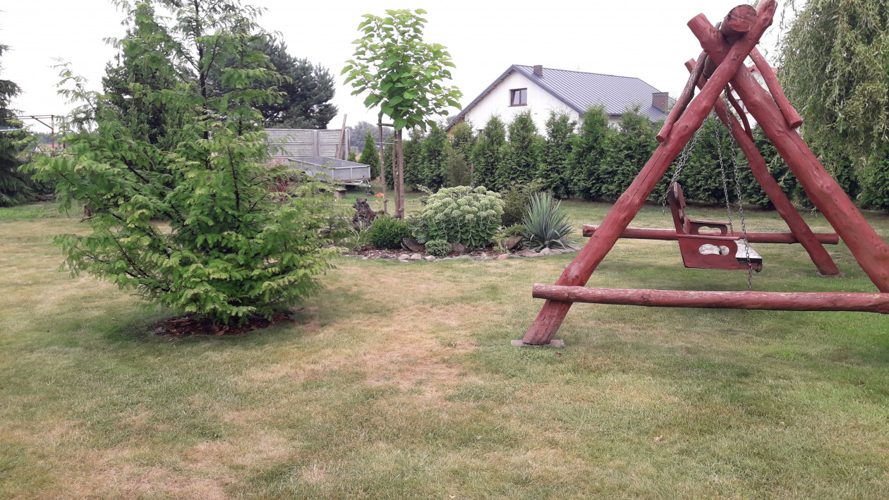 Nasz ogród ma 15 lat . Na początku w większości rosła trawa i iglaki , później zaczęliśmy tworzyć rabaty i skalniaki.Oczko zrobiliśmy 10 lat temu jest domem dla wielu ptaków ,owadów i ryb ,które w nim żyją . W naszym ogrodzie rosną funkie i inne byliny .Kwiaty kwitnące pojawiły się niedawno i wniosły do naszego ogrodu kolory będziemy kontynuować ich sadzenie najbardziej lubimy jeżówki i hortensje.Posiadamy ,również ogródek warzywny z którego co roku mamy swoje warzywa .Rosną również drzewka owocowe i krzewy . Najchętniej wypoczywamy w altanie przy oczku w świetle lamp i szumie wody .