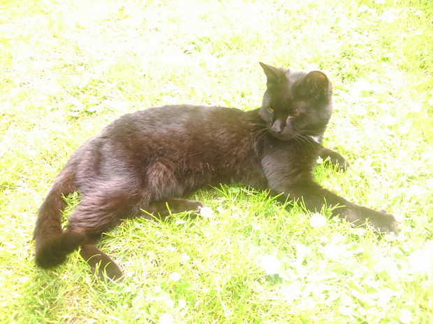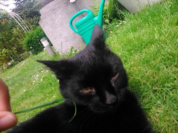 Ostatnio w moim ogródku pojawił się nowy gość. Jest to śliczny, czarny kotek, który ma dwie białe plamki i jedno oczko brązowe, a drugie - żółte. Przypuszczam, że zgubił dom. Jest bardzo inteligentny, jak na kota. Jednak mam problem. Ten kotek jest bardzo towarzyski, ale nie może być z nami w domu, bo suczka Ula (którą już zamieściłam w poprzednich galeriach) nie może się z tym pogodzić... Kotek śpi w osobnym pokoju, gdzie Ula nie ma dostępu i lubi dobrze zjeść. Na razie ma się dobrze i nas polubił. komentujcie tego kotka i inne galerie, bo jestem ciekawa, co myślicie o moich galeriach i oczywiście kotku :) Pozdrawiam Wszystkich i zapraszam serdecznie do komentowania. Rolnik :)