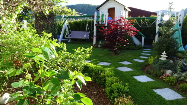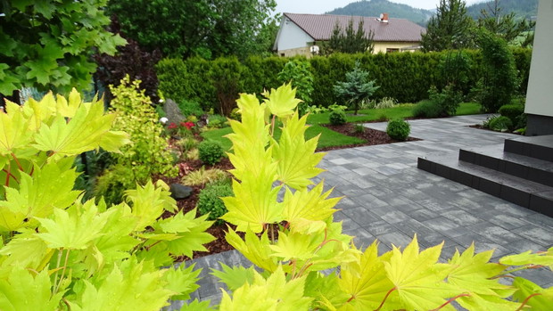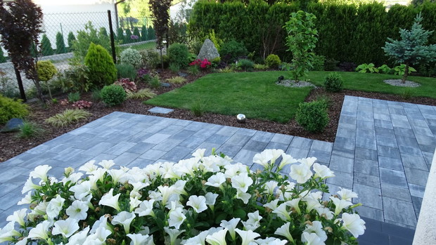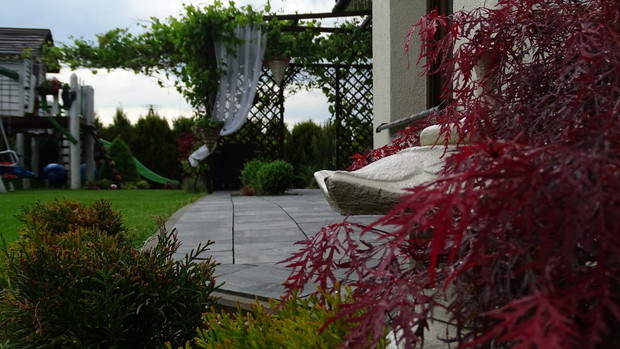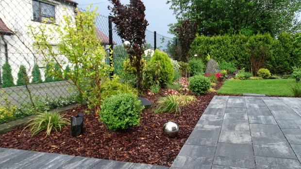 Witajcie. Ogród trochę się zmienił w tym sezonie. Zmiana bruku i wyprostowanie linii rabat dobrze mu zrobiło. Zapraszam do komentowania. Kto mnie jeszcze mie zna to kilka słów. Ogród ma 5 lat, samodzielnie projektowałem go i wykonywałem. Takie mam hobby. Każda chwila w ogrodzie to dla mnie relaks. Ogród spełniać ma role wypoczynkową, ale również posiadać miejsca zabaw dla naszego 7 letniego synka.